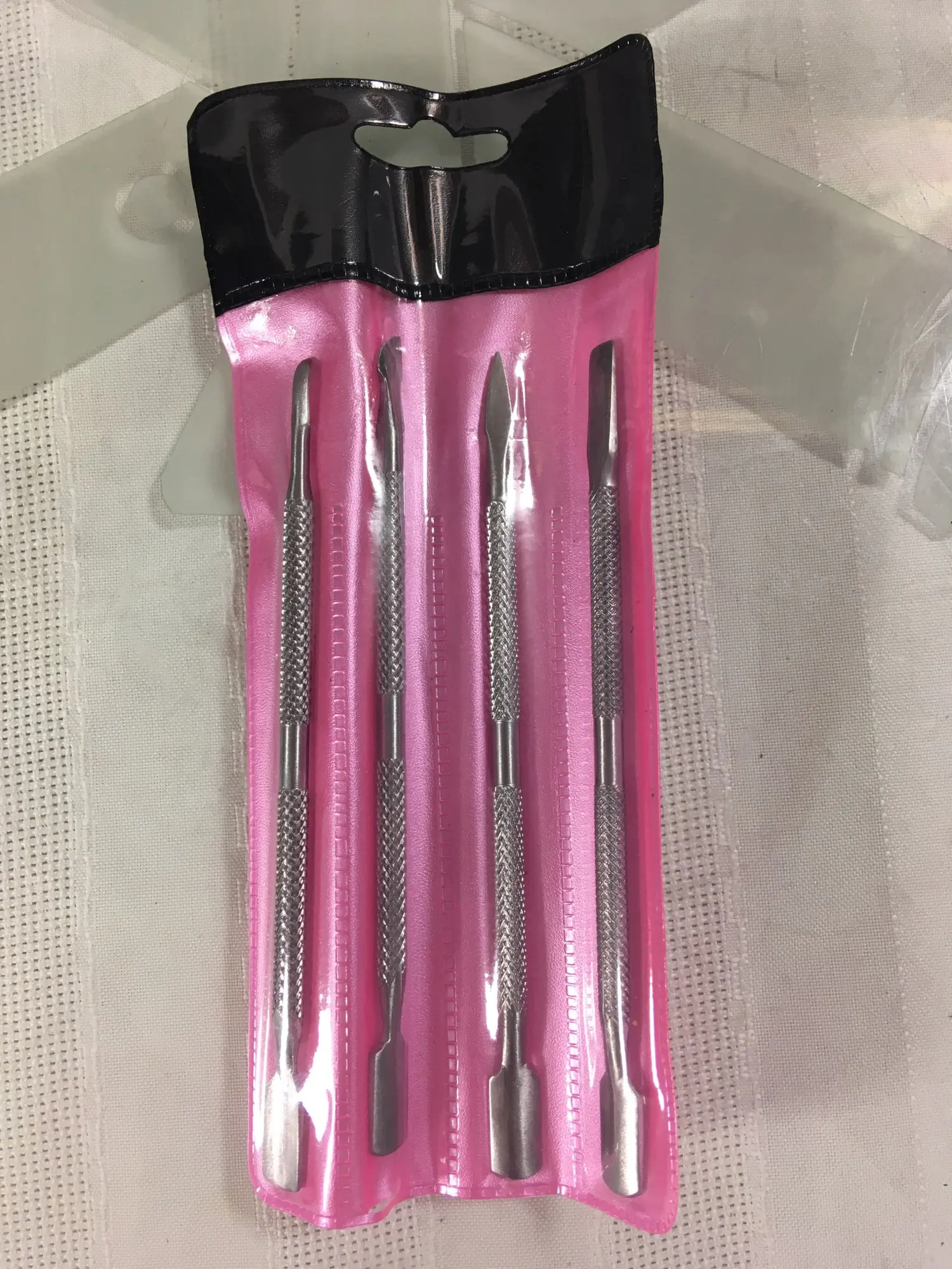 4 шт. Лот, средство для удаления кутикулы из нержавеющей стали, двусторонний палец, омертвевшая кожа, толкатель для кутикулы, маникюрный инструмент для ухода за ногтями