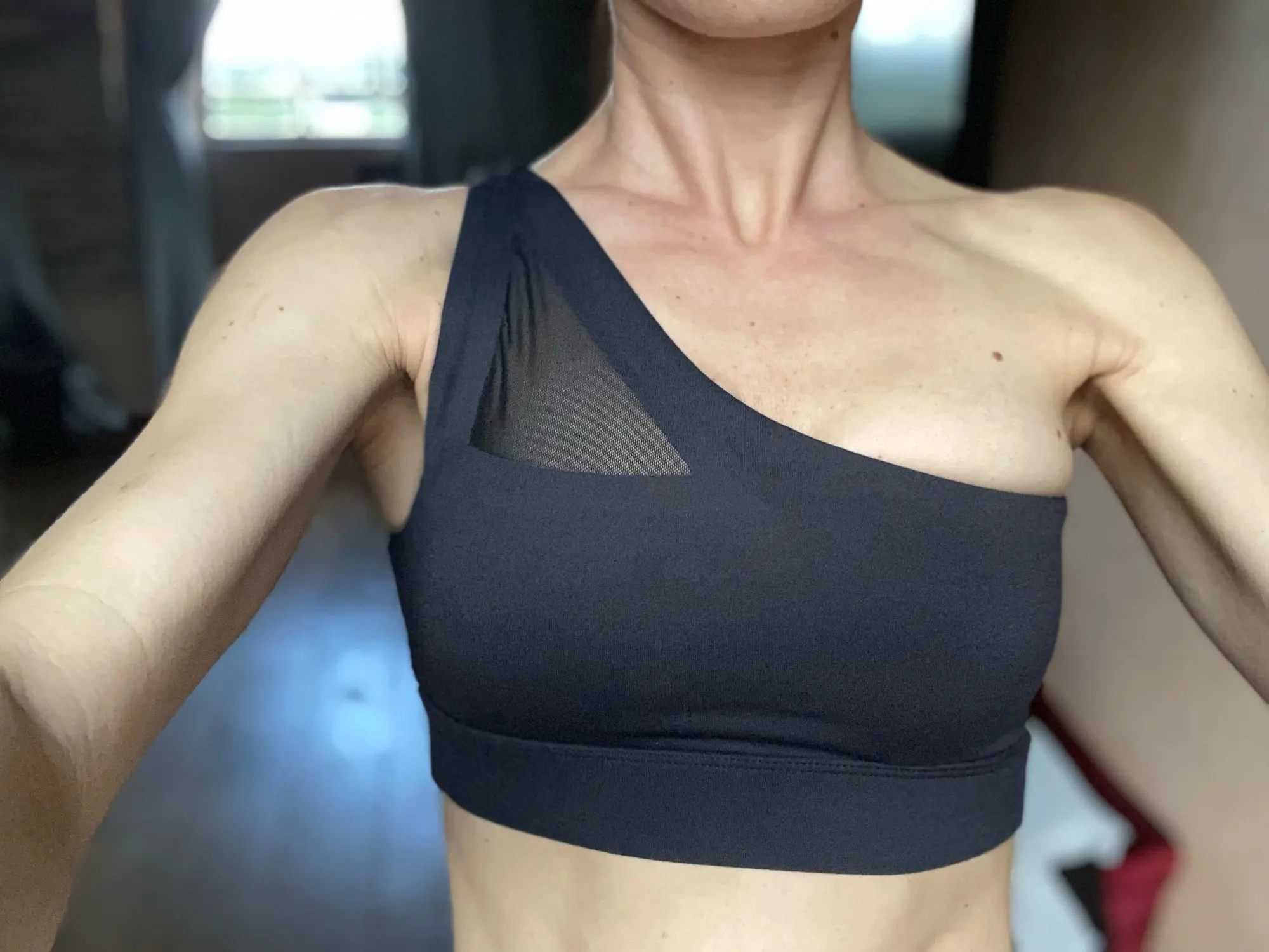 Женский спортивный бюстгальтер с открытым плечом и вырезами на спине