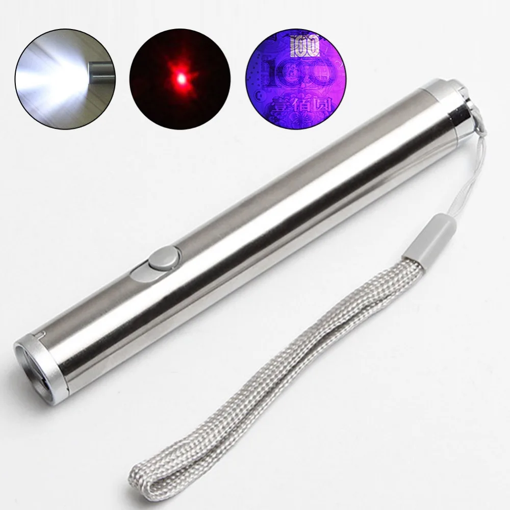 3in 1 Портативный многофункциональный карманный мини светодиодный лазерный УФ ручка фонарь фонарик