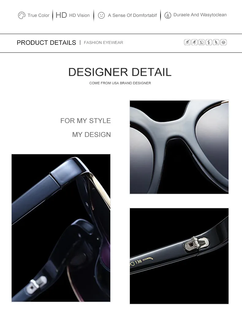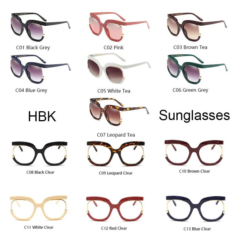 Женские солнцезащитные очки большого размера HBK, черные винтажные прозрачные солнцезащитные очки большого размера d в стиле ретро