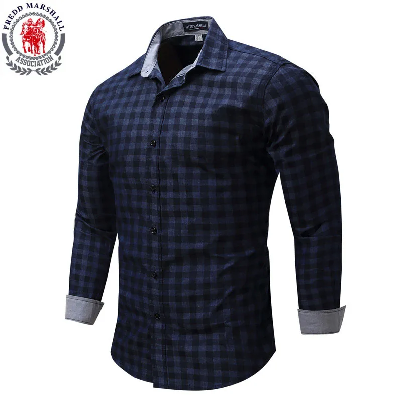 Мужская хлопковая рубашка в клетку, повседневная мягкая рубашка с длинными рукавами, Европейский Размер 2XL, 2017