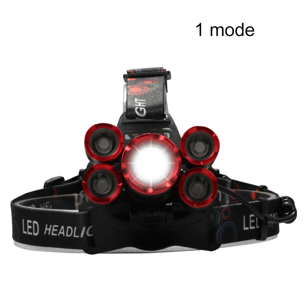 5 * T6 светодиодный налобный фонарь, 4 режима, зуммируемый налобный фонарь, USB Перезаряжаемый налобный фонарь + 2*18650 батареи + зарядное устройство переменногопостоянного тока + бесплатная коробка