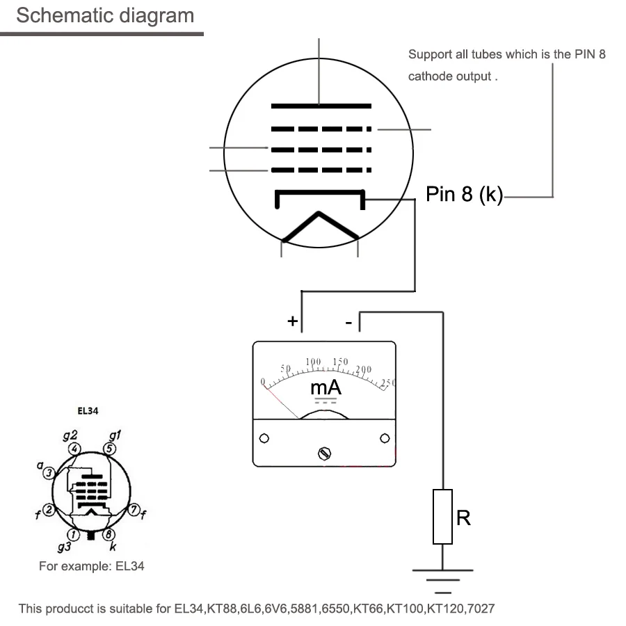 Этот продукт подходит для EL34,KT88,6L6,6V6,5881,6550,KT66,KT100,KT120,7027