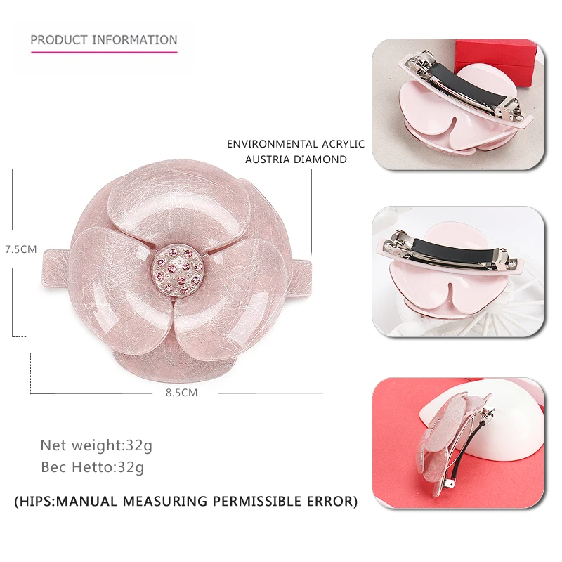 Новые летние акриловые заколки для волос Камелия Цветок защелкивающийся зажим с Стразы