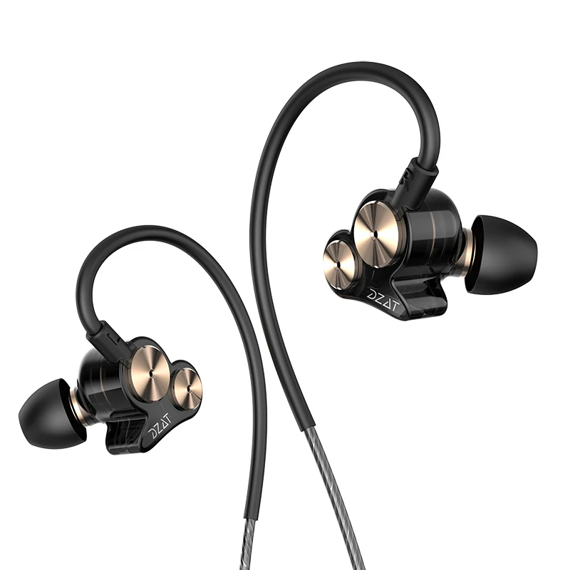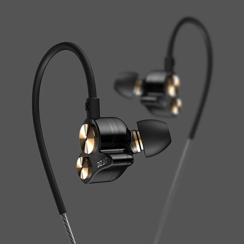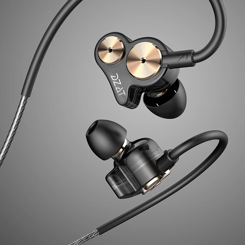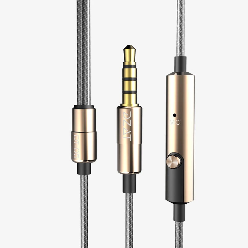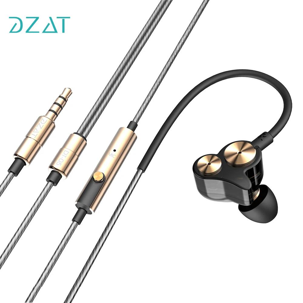 Внутриканальные наушники DZAT DT-05 с двойным динамиком, разъем 3,5 мм, проводные спортивные наушники с шумоизоляцией, наушники с микрофоном для смартфонов