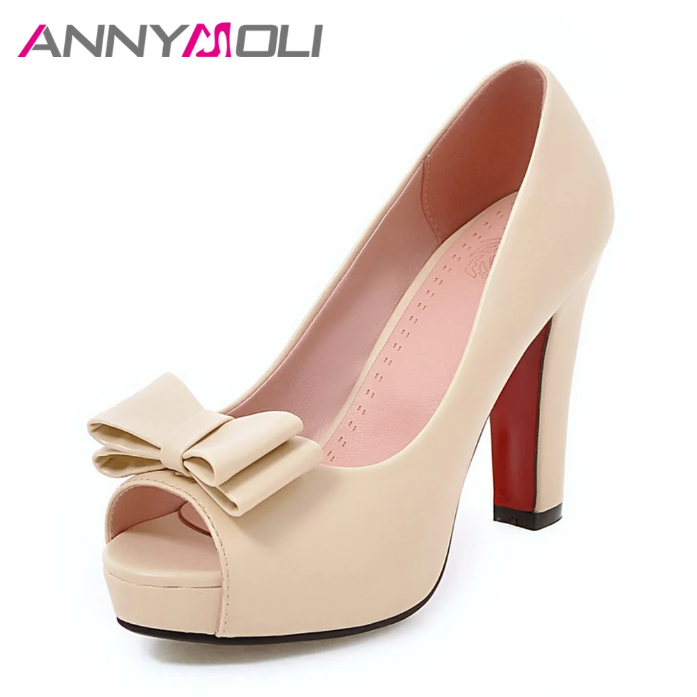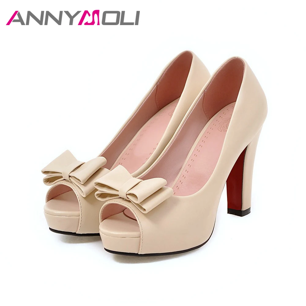 Туфли-лодочки ANNYMOLI женские на платформе и высоком каблуке, с открытым носком, с бантом, Роскошные, размеры 43-33, весна 2019