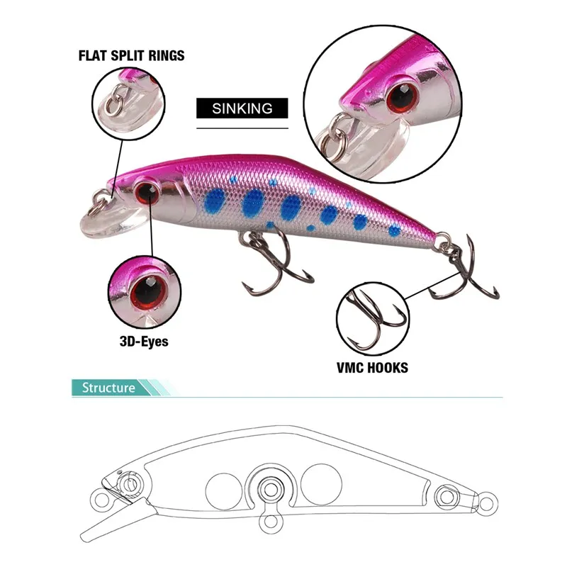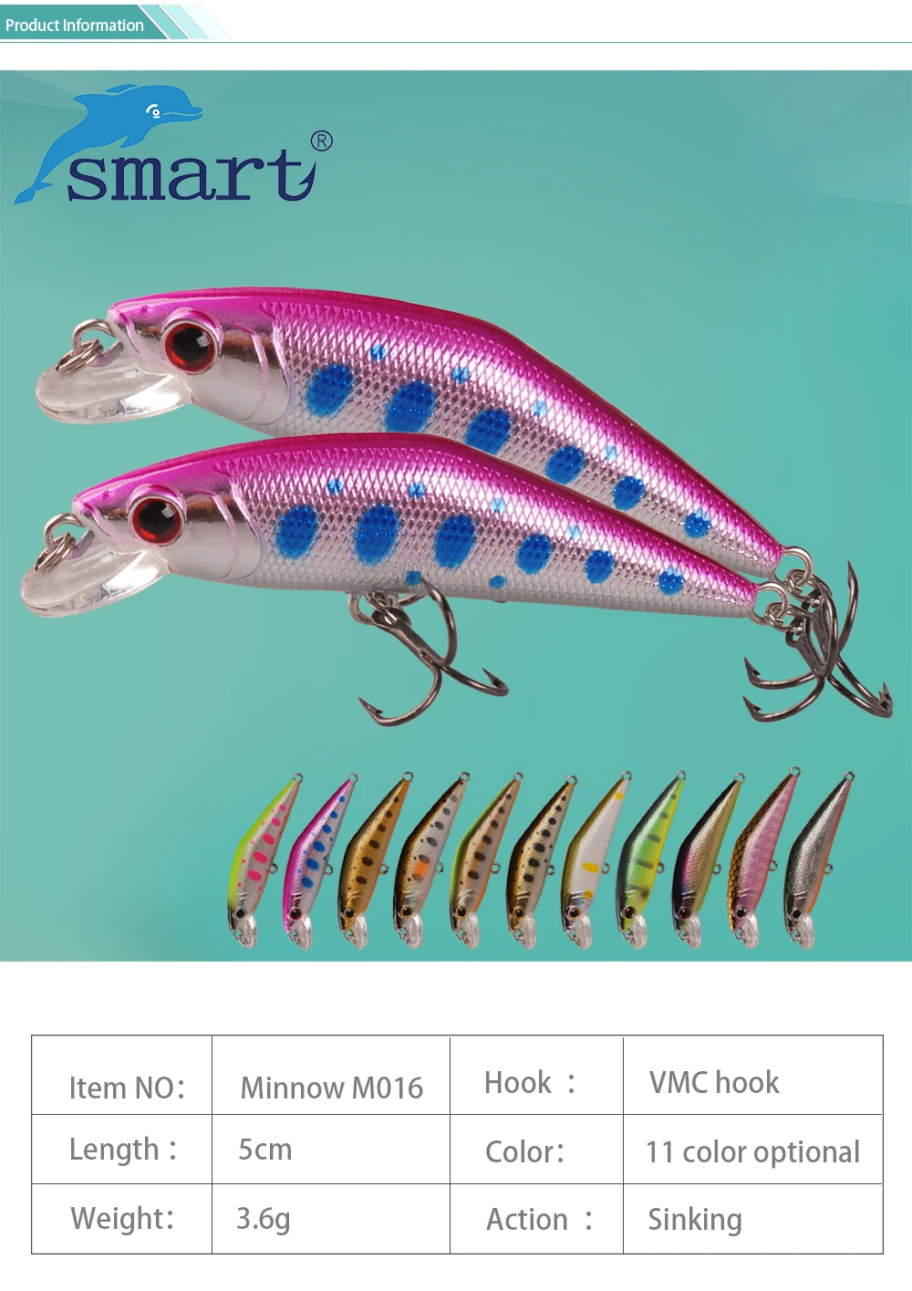 Блесна SMART Bait 50 мм 3,6 г, Тонущая жесткая Рыболовная Приманка VMC с крючком, искусственная приманка для рыбалки, воблеры для рыбалки