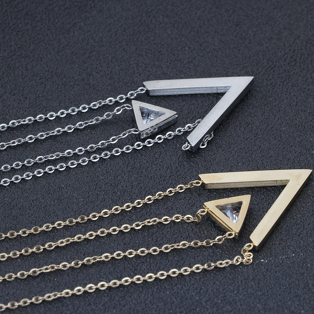 Женское Ожерелье с двойным v-образным вырезом NIBA, золотистого цвета, с геометрическим трехкратным кулоном из кубического циркония, Трендовое колье
