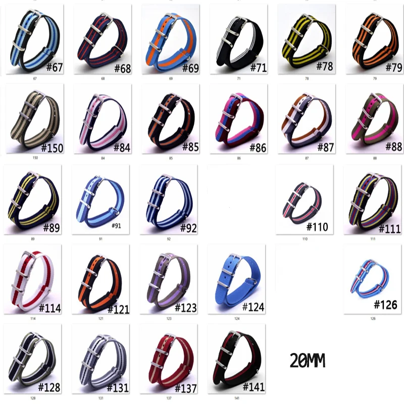 10 шт., стиль 2018, ремешок для часов Nato с серебряной пряжкой, Военный нейлоновый ремешок для часов, браслет для часов 16, 18, 20, 22, 24 мм