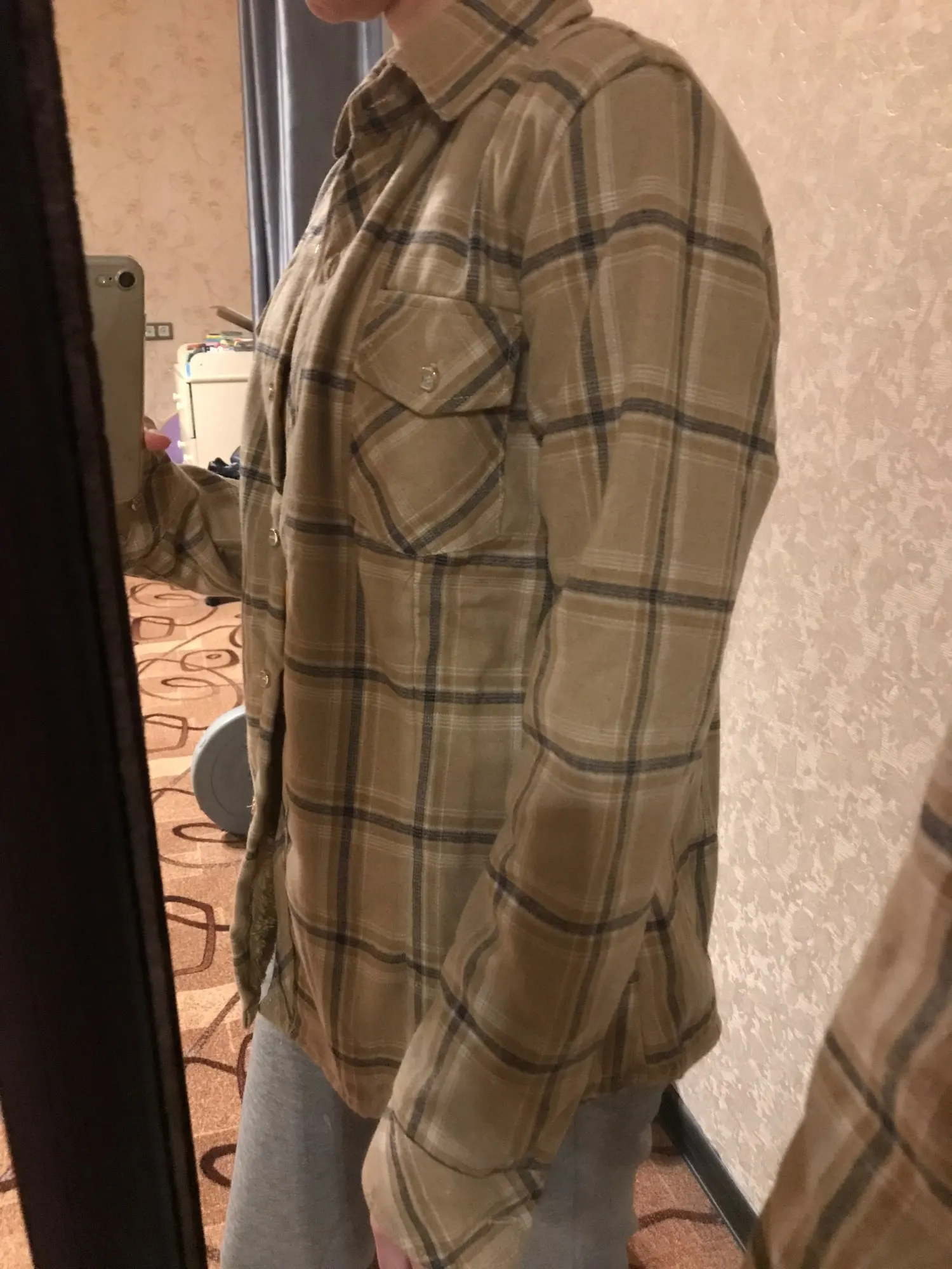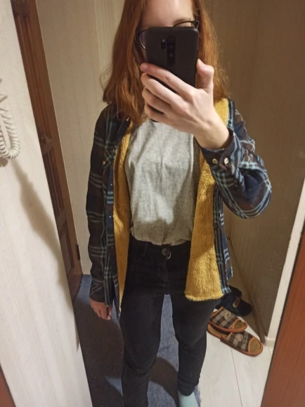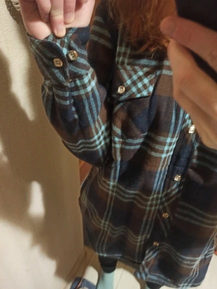 Рубашка действительно теплая. Немножко с размером не угадала, свободного кроя. Тот кто мёрзнет рекомендую.