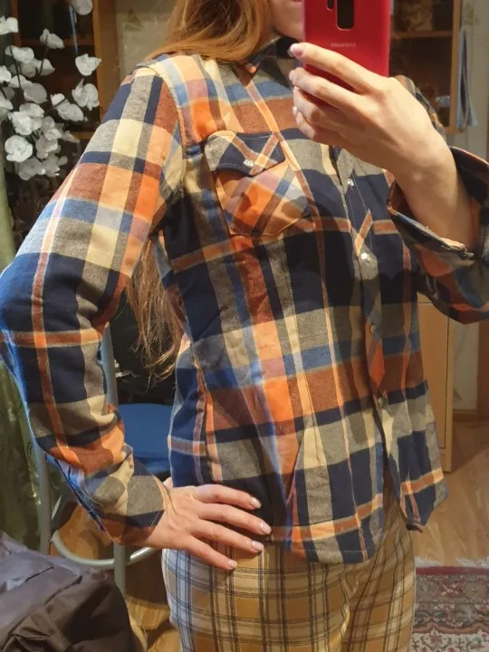 заказала рубашку,пришло очень быстро уже покупала похожий товар. хотела заказать на размер больше чтобы после стирки не села...но этот размер М больше похож на S. поэтому рубашка полностью по моему размеру. если сомневаетесь какой размер брать смело берите на размер больше ). прошлую такую рубашку я носила 3-4года очень хорошее качество, тяжело с ней было расставаться, простились с ней т.к. после большого количества строк она немного села и покрывать катышками. в целом рубашка очень тёпла и выглядит оч сильно, спасибо Али♡