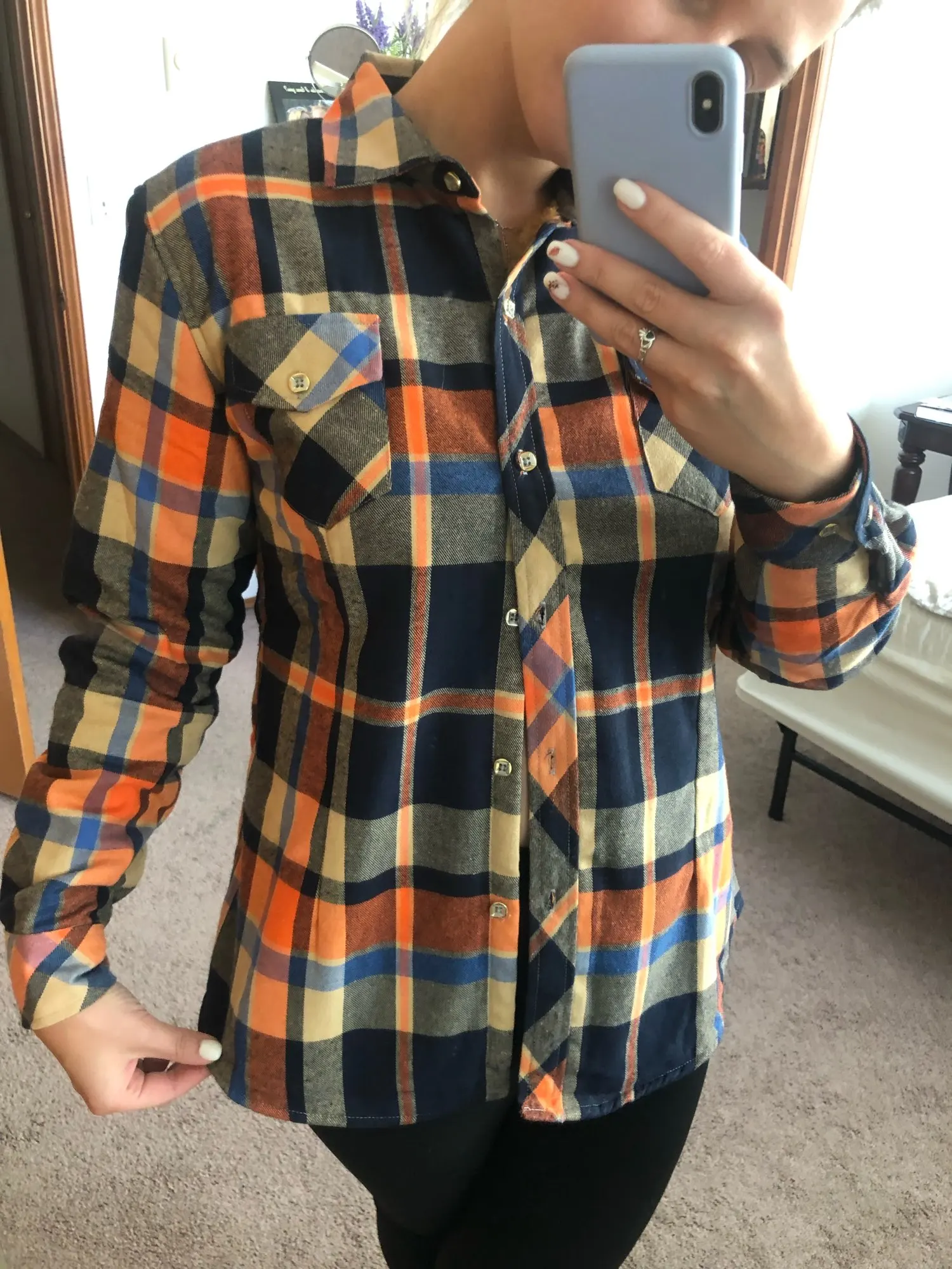 Рубашка хорошего качества. Торчало пару ниток, но это ерунда. Строчки ровные, прошита хорошо. Очень тёплая, мягкая и приятная к телу. На ОГ 78см, ОТ 62см и рост 160 взяла XL. Села свободно, комфортно. Можно носить самостоятельно с джинсами, поверх футболки или под жилетку. Продавец общительный, посоветовал размер. До Волгограда дошла за 15 дней.Покупкой довольна!