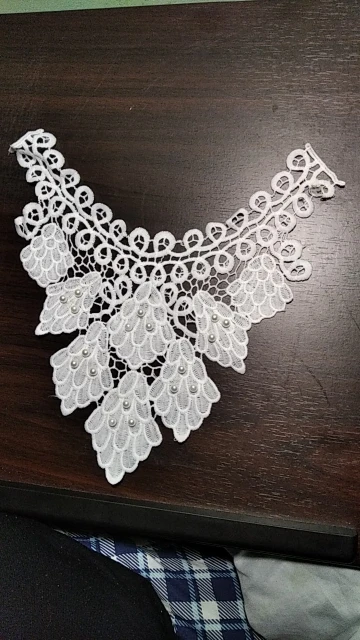 Очаровательная вышивка с жемчужинами на воротничке, можно его одеть как с платьем, так и с блузкой, очень красиво будет, рекомендую товар и продавца, продавцу пять звёзд!!!!