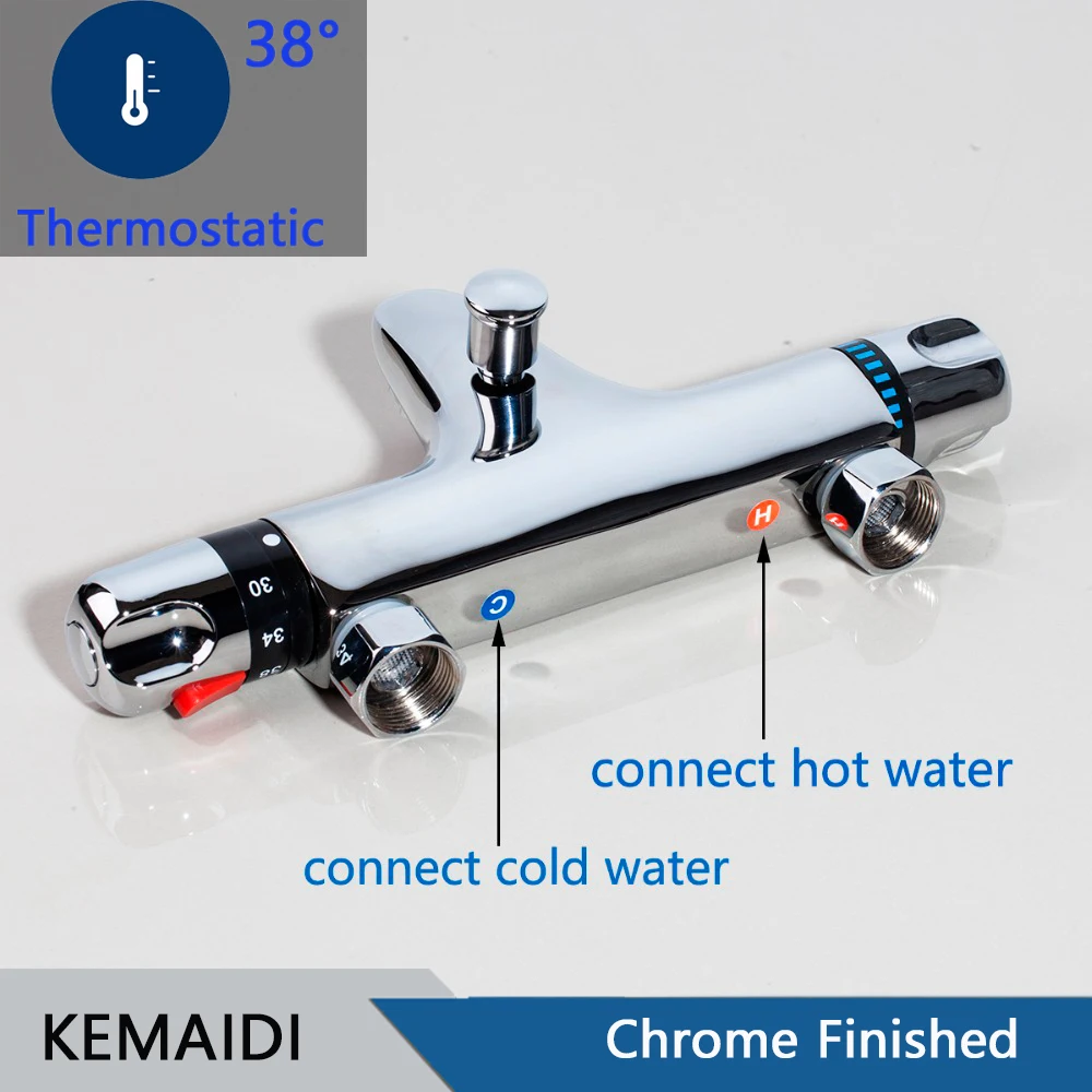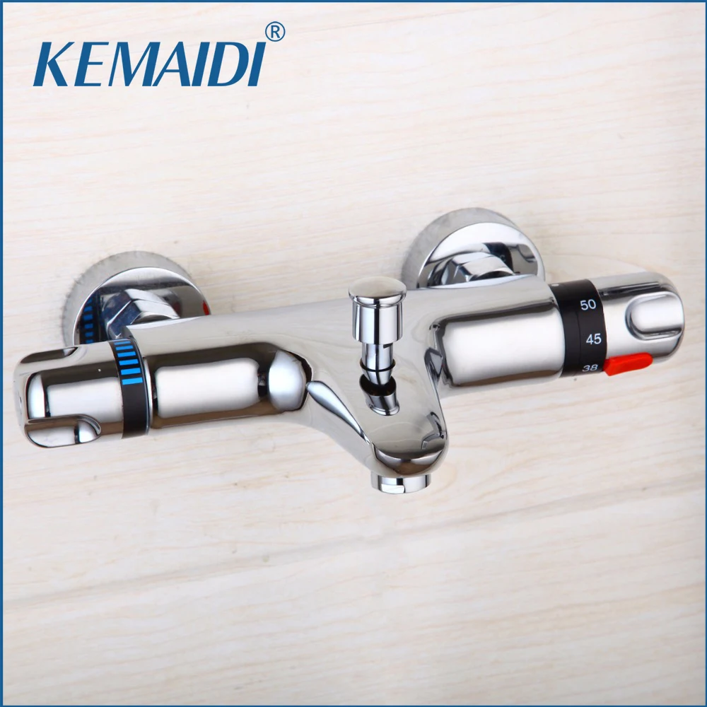 Термостатический смеситель для душа KEMAIDI, настенный хромированный кран с двойной ручкой, наполнитель для клапан для ванны