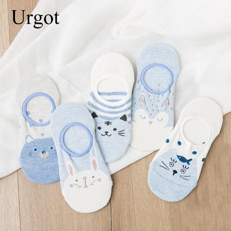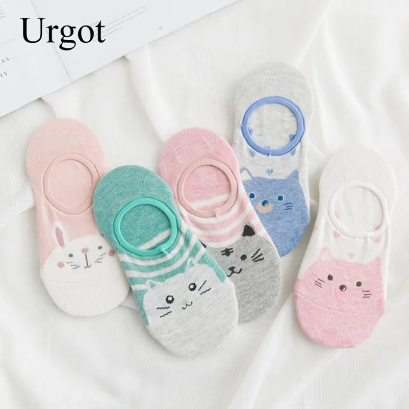 Urgot 5 пар, женские дизайнерские Носки с рисунком животных, летние дышащие повседневные женские забавные носки