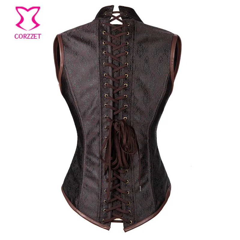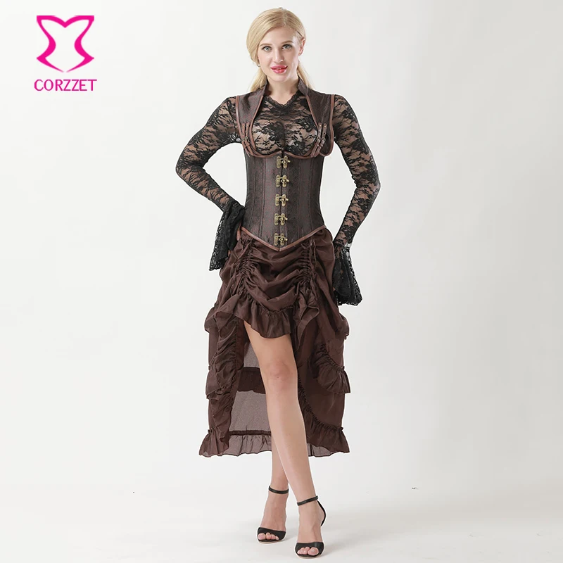 6XL коричневый парчовый пикантный корсет без чашек, корсеты под грудью в стиле стимпанк и бюстье, Женская винтажная готическая одежда, платье для бурлеска