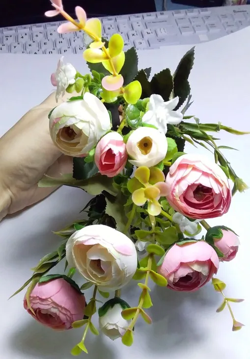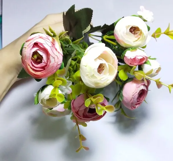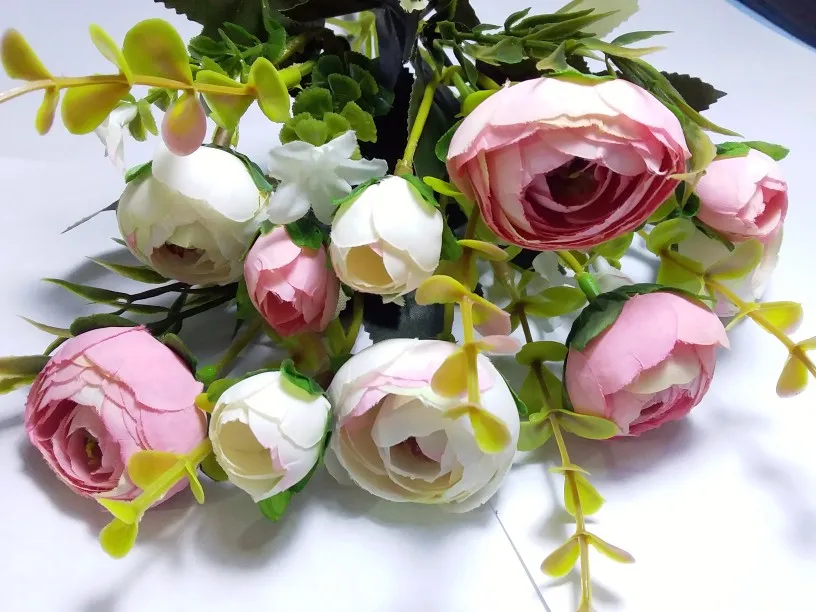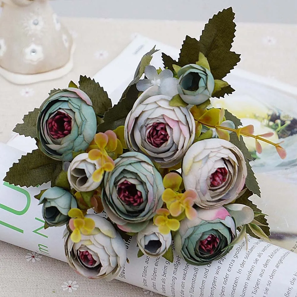 Искусственные цветы, 1 букет, недорогие Шелковые Растения, европейская осень небольшой чайный бутон, искусственные листья, вазы для украшения дома, свадьбы, вечевечерние