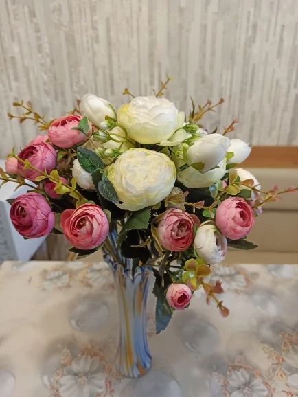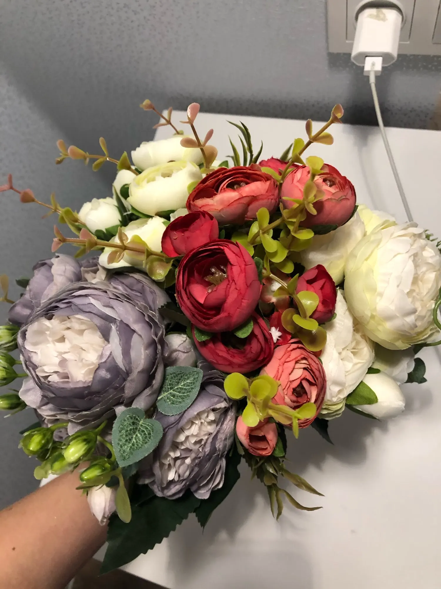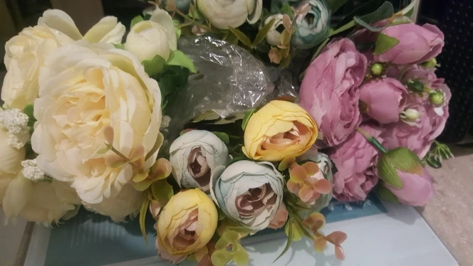 Итак, продавец один. Я выбрала три варианта цветов. Два букетик поменьше и один большой с белыми пионами. Шла посылка 1 месяц, примерно. Все отслеживалось. Цветы прекрасные. Конечно, при транспортировке они слегка помялись, но я подержала их над паром, расправились. Покупка удачная, рекомендую, фото прикрепляю