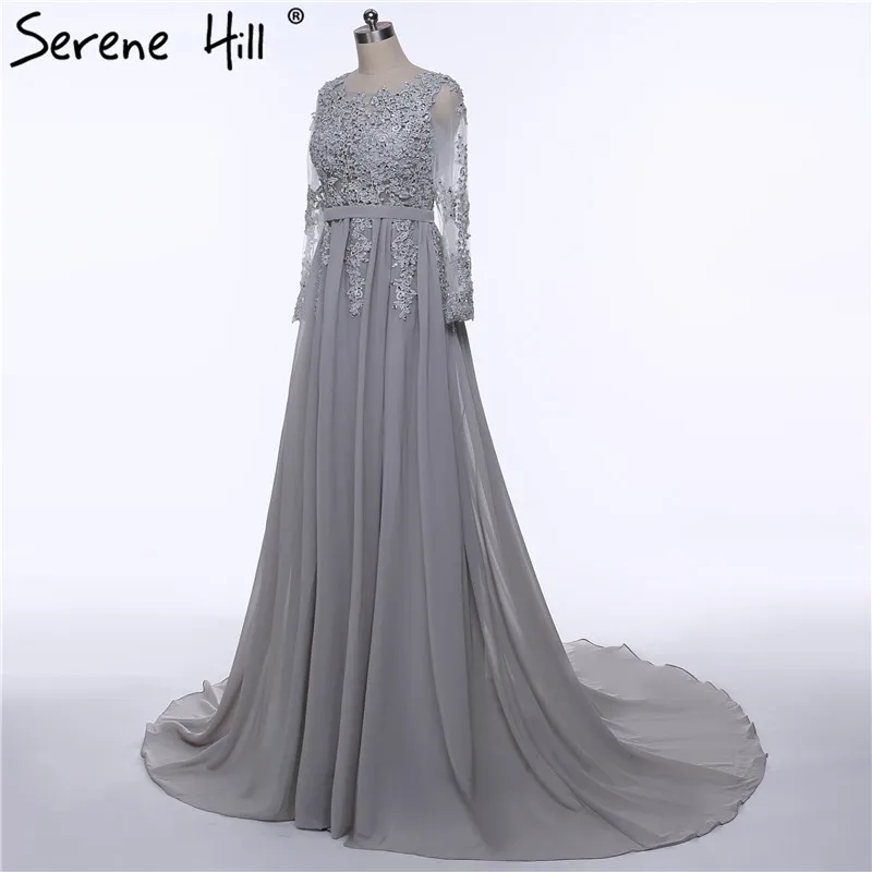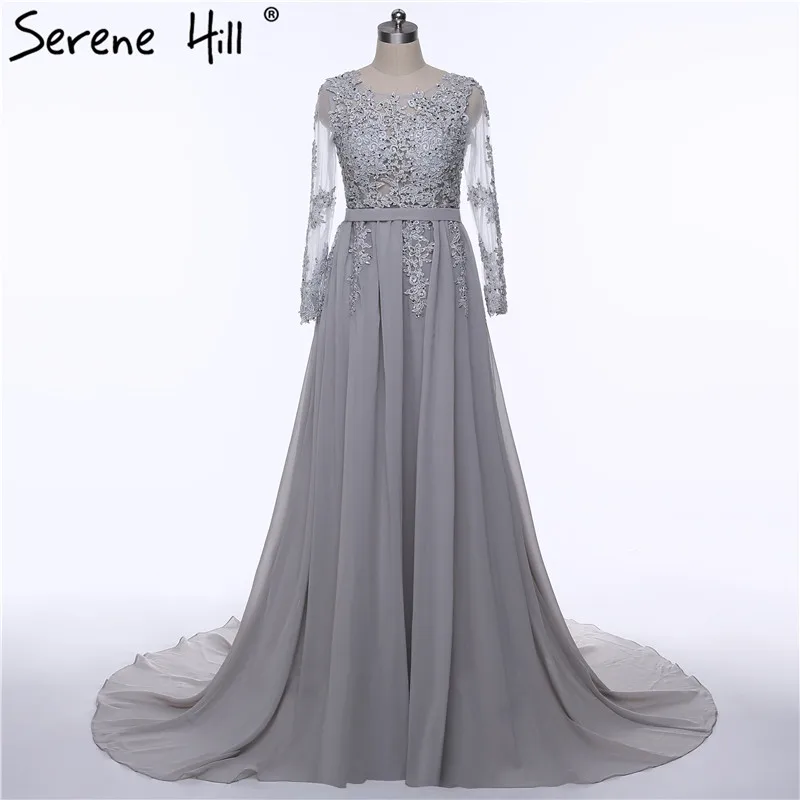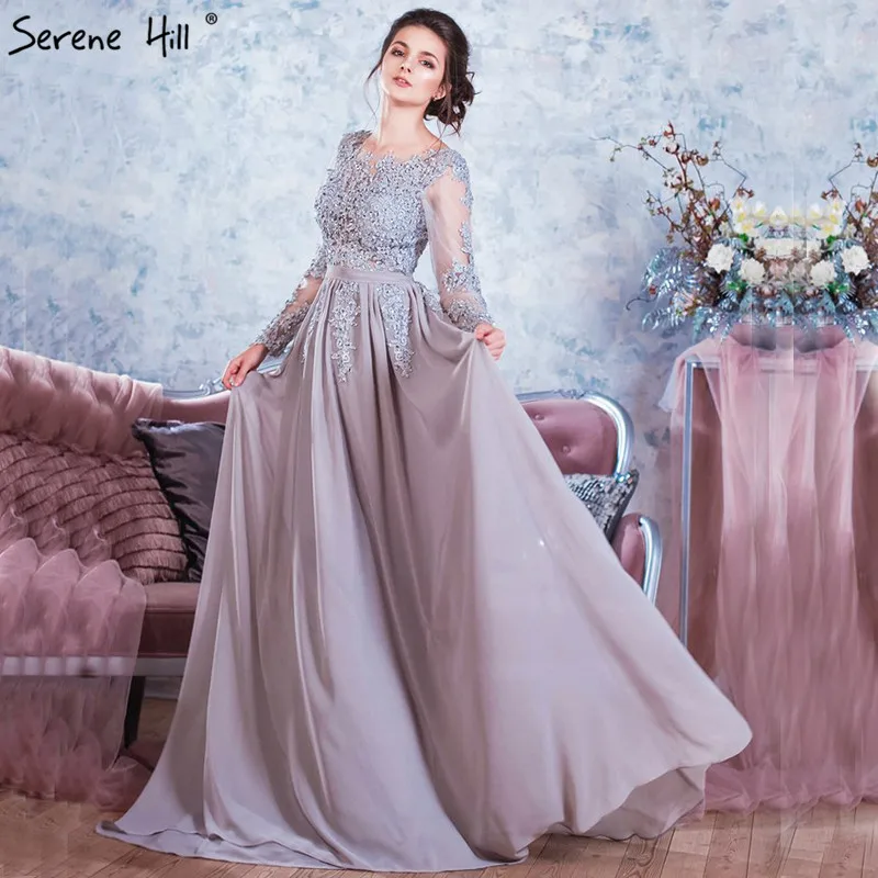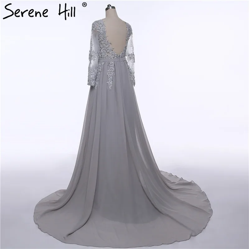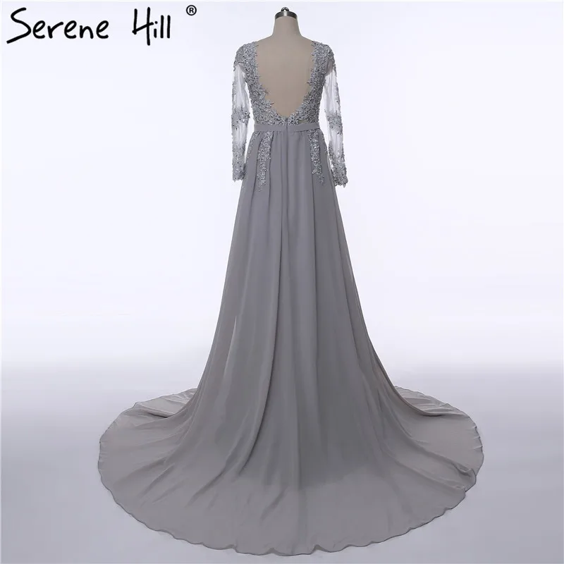 Серые элегантные вечерние платья с длинным рукавом и открытой спиной, шифоновые вечерние платья с бисером и кристаллами, 2021 настоящая фотография HA2149