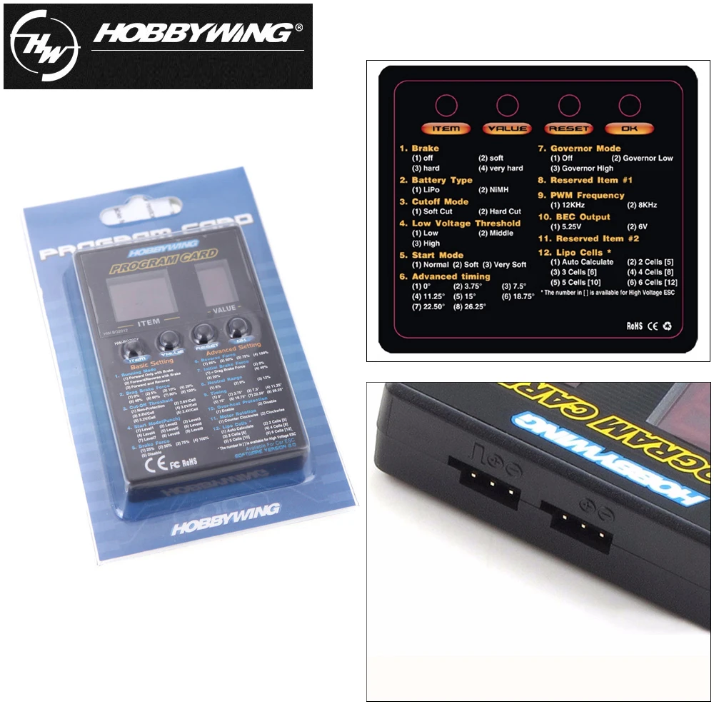 • ESC совместим с бессенсорными бесщеточными двигателями и бесщеточными двигателями с датчиком (только в бессенсорном режиме).• Полностью водонепроницаемый дизайн для любых погодных условий.• Супер внутренний переключатель-Режим BEC с переключаемым НАПРЯЖЕНИЕМ 6 В/7,4 В и cont. /Пиковый ток 6А/15А для легкого вождения большой крутящий момент сервопривода и высоковольтных сервоприводов.• Высоконадежный электронный переключатель позволяет избежать проблем, которые могут возникнуть в связи с традиционным механическим переключателем из-за грязи, воды, тире и т. д.• Отдельный порт программирования, чтобы легко подключить светодиодную программную карту или ЖК-дисплей к ESC.• Пропорциональный тормоз с 9 уровнями максимальной тормозной силы и 9 уровнями сопротивления тормозной силы.• 5 уровней ускорения/ударов от мягкого до агрессивного для различных транспортных средств, шин и дорожек.• Множественная защита: защита от блокировки двигателя, защита от среза низкого напряжения, ТермоЗащита, защита от перегрузки и защита от сбоя (защита от потери сигнала дроссельной заслонки).• Расширенное Программирование с помощью портативной светодиодной программной карты или многофункциональной ЖК-панели.• Обновление прошивки с помощью многофункциональной ЖК-панели HOBBYWING (товар продается отдельно).