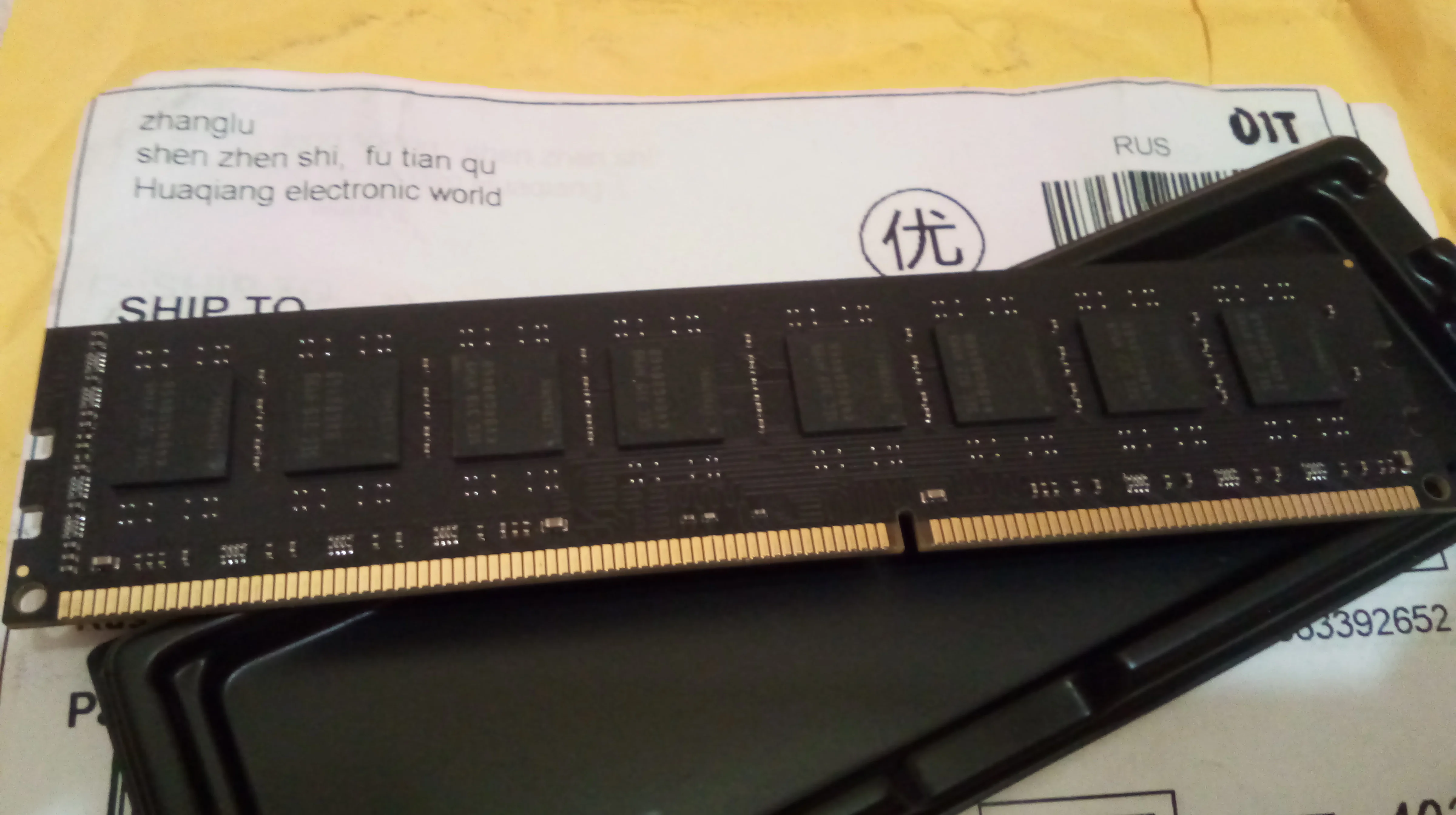 Посылка доехала в Белгород за 2 недели. Заказывал такую память 2*8гб у другого продавца, приехала одна планка нерабочая. Решил купить здесь до пары. Когда распаковал пакет, моему возмущению не было предела(на фото видно, что написано на упаковке, и что на самой планке). Потом сравнил чипы на этой планке и на моей, оказалось, что они идентичные за исключением партии. После этого воткнул в комп. и оказалось всё нормально, даже даты изготовления с моей одинаковые. В итоге наклейка на самой планке не соответствует действительности(чему я был несказанно рад). Продавцу надо быть внимательней.