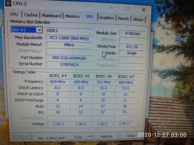 Страна: RU Memory Capacity: 8G 1600 For Intel Доставка: Standard Shipping 13.11.2020