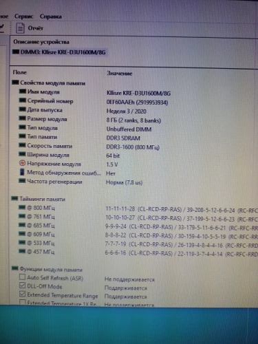 отличная оперативная память, беру третий раз, на 1600мггрц спокойно гониться до 1866мггрц, если материнка хорошая, то спокойно спокойно работает на таймингах 10.10.10.32, если мать капризная, то на 11.11.11.28, а самое главное быстрая доставка!:)) Вот мой скрин с таймингами!:)excellent RAM, I take the third time, on 1600mggrts calmly chase up to 1866mggrts, if the motherboard is good, then calmly works on timings 10.10.10.32, if the mother is capricious, then on 11.11.11.28, and most importantly fast delivery!:)) Here is my screen with timings!:)