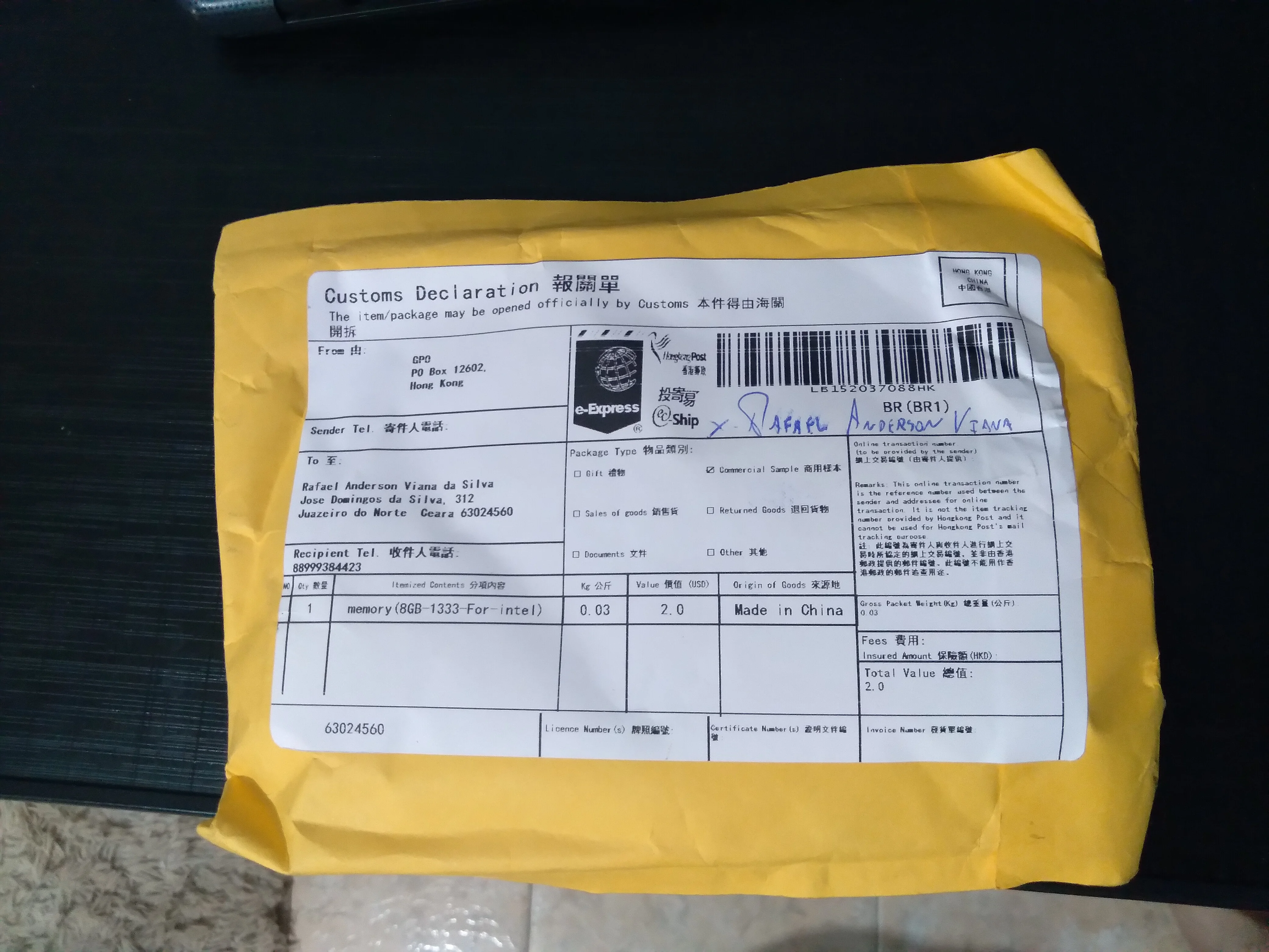 Страна: BR Memory Capacity: 8G 1600 For Intel Доставка: Standard Shipping 26.09.2020