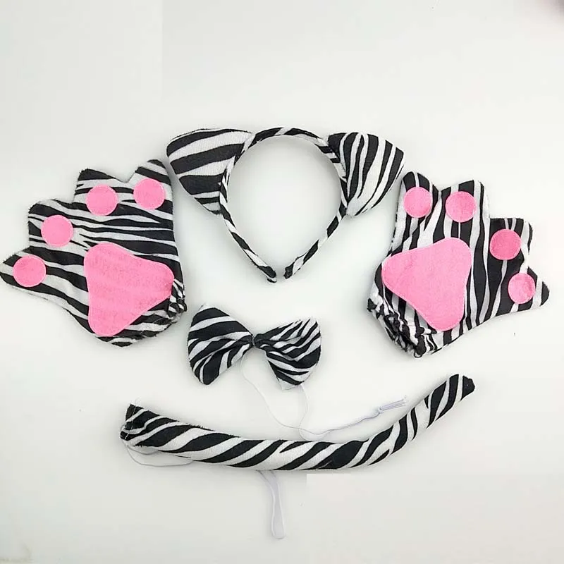 Плюшевый костюм для косплея для мальчиков, повязка на голову с ушками зебры, хвост, лапа, перчатки, комплект с животными для вечеринки, дня рождения, для взрослых и детей
