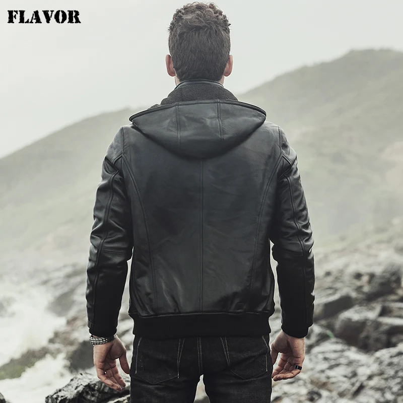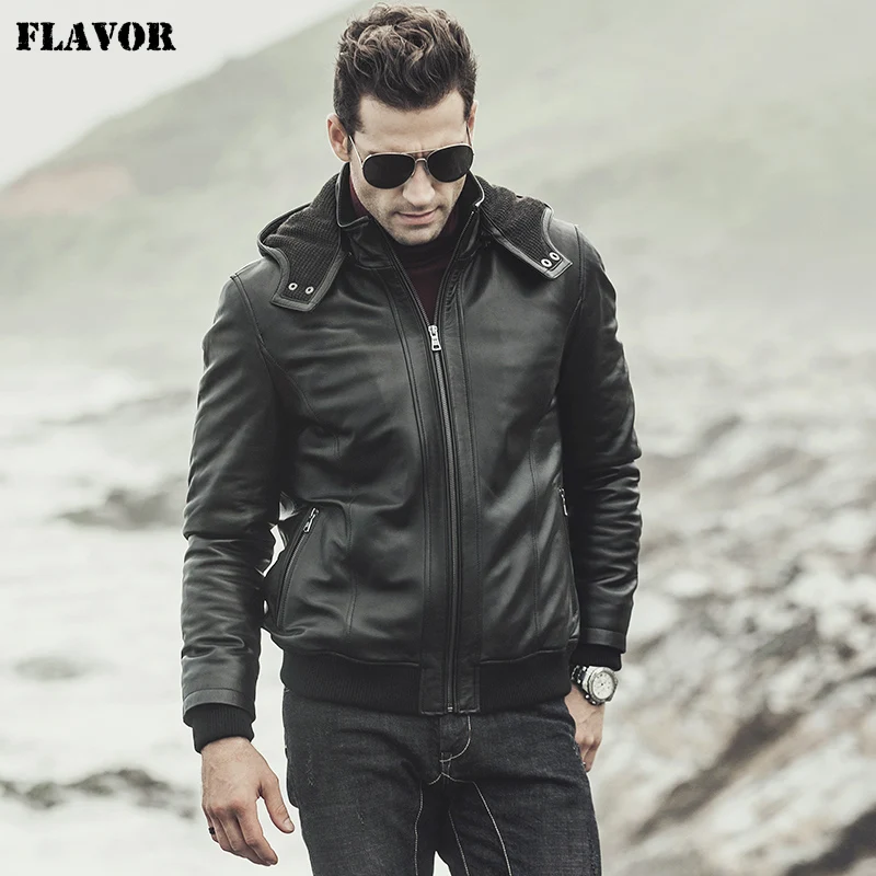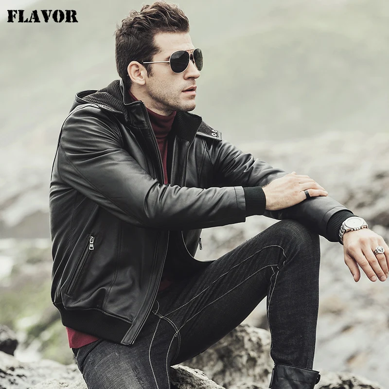Мужская мотоциклетная куртка FLAVOR, кожаная куртка из натуральной овчины с капюшоном, новинка зимы 2017