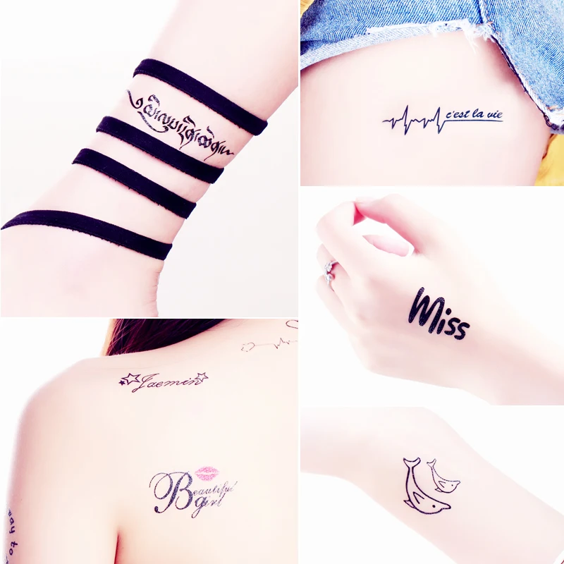 Наклейки временные мужские, женские, мужские, водостойкие, татуировка в виде письма, 60 шт.набор
