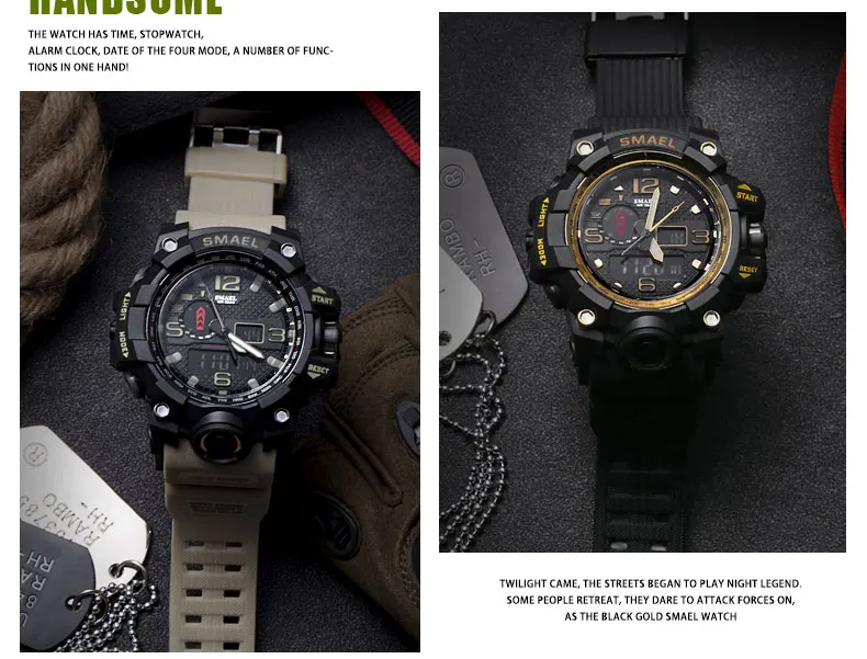 Часы SMAEL с двойным дисплеем, мужские, водонепроницаемые, светодио...