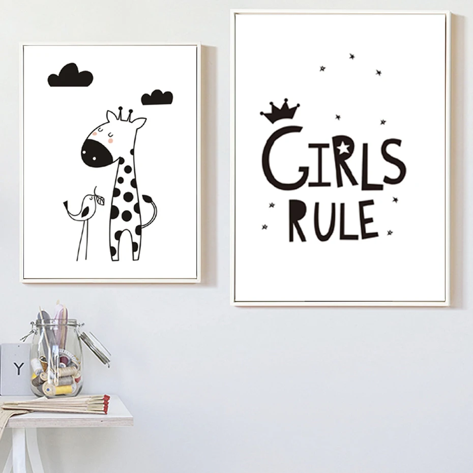 Картина для детской комнаты с изображением жирафа в нордическом стиле
