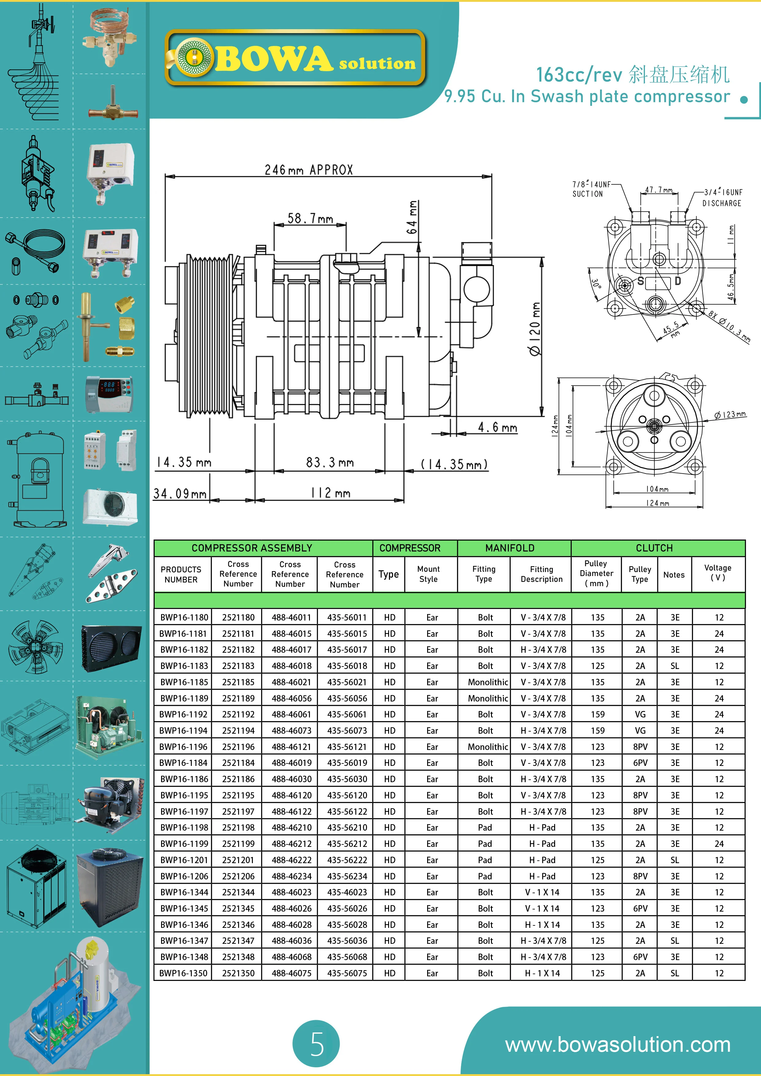 Сборный компрессор пластины 163ccrev swash используется в обычных топливных автомобилях, грузовиках, автобусах, кондиционерах и рефрижераторах