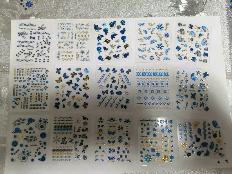 30 листов, 3D золото синие предупреждающие знаки, горячее тиснение, наклейки для ногтей, дизайн ногтей, Блестящие бабочки, Самоклеющиеся татуировки для ногтей,