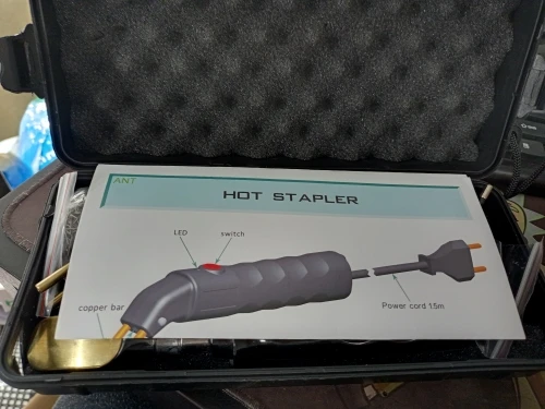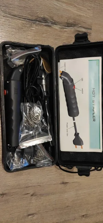 Доставили быстро. Опробовал в работе на пластиковых брызговиках: конструкция степлера удобная, работает хорошо, соединение достаточно надежное. Наличие утюжка позволяет более аккуратно формировать шов