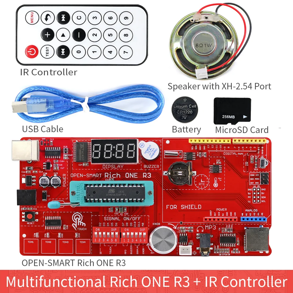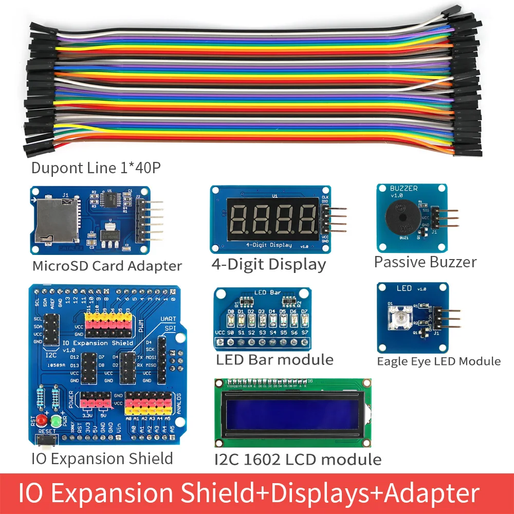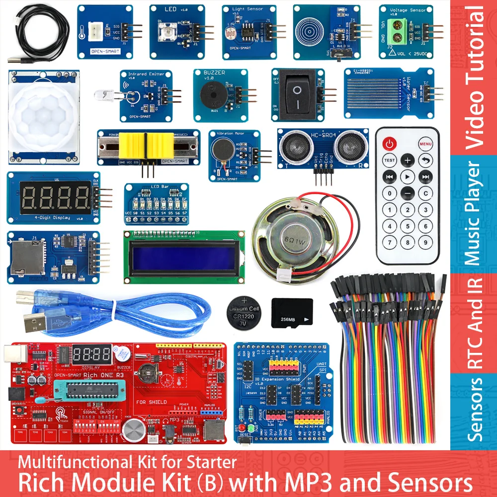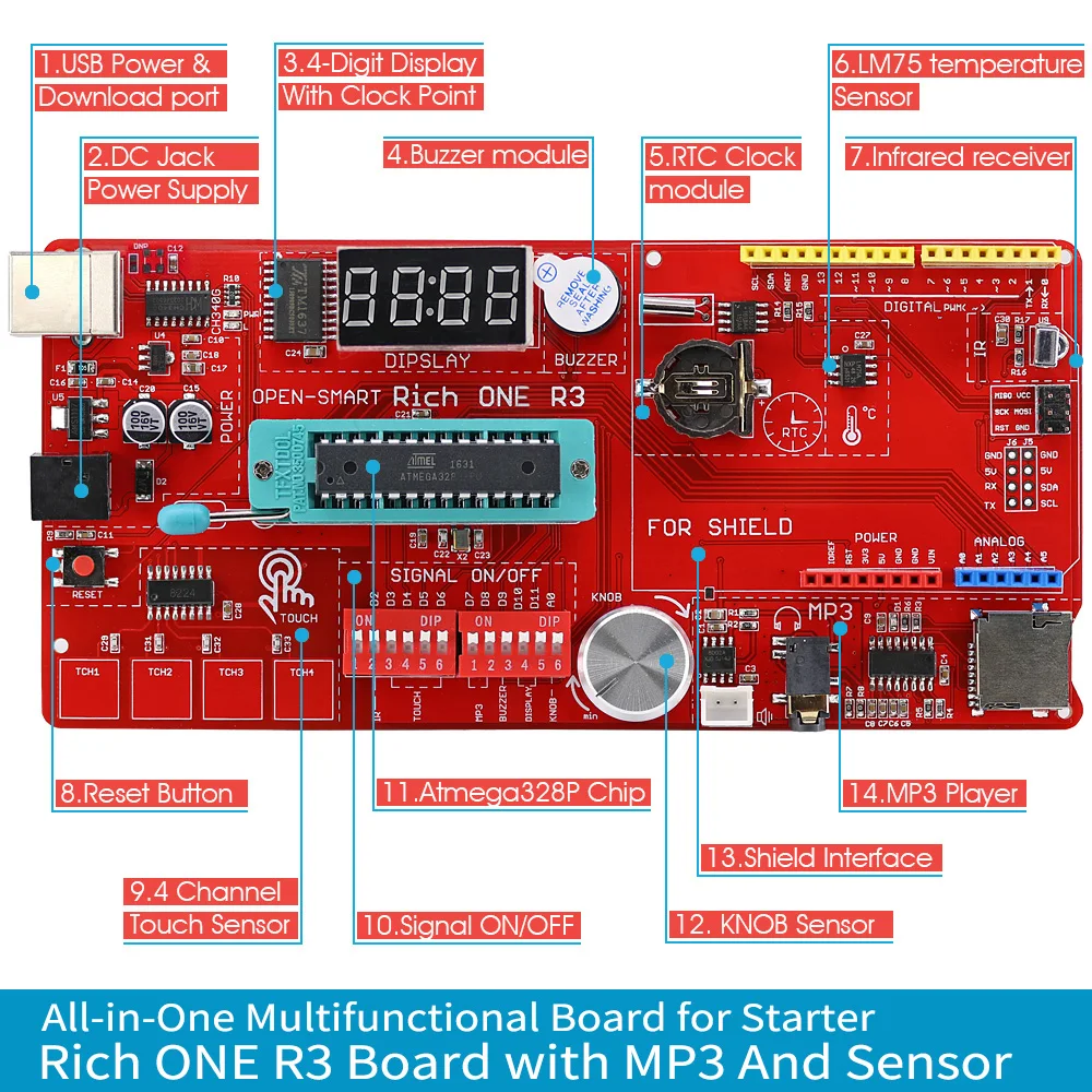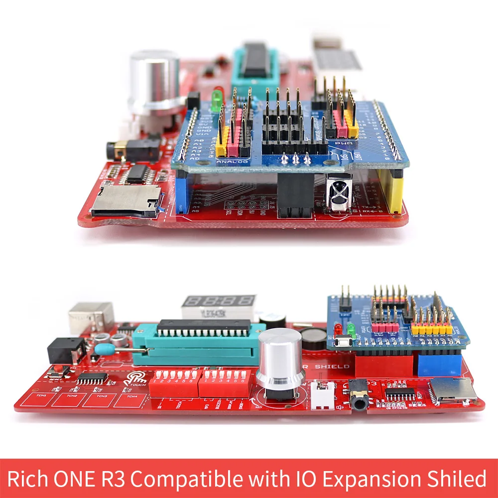Стартовый комплект модуля богатых датчиков Atmega328P, макетная плата с защитным выводом IO, MP3 DS1307 RTC LCD IR NTC Touch, совместима с Arduino