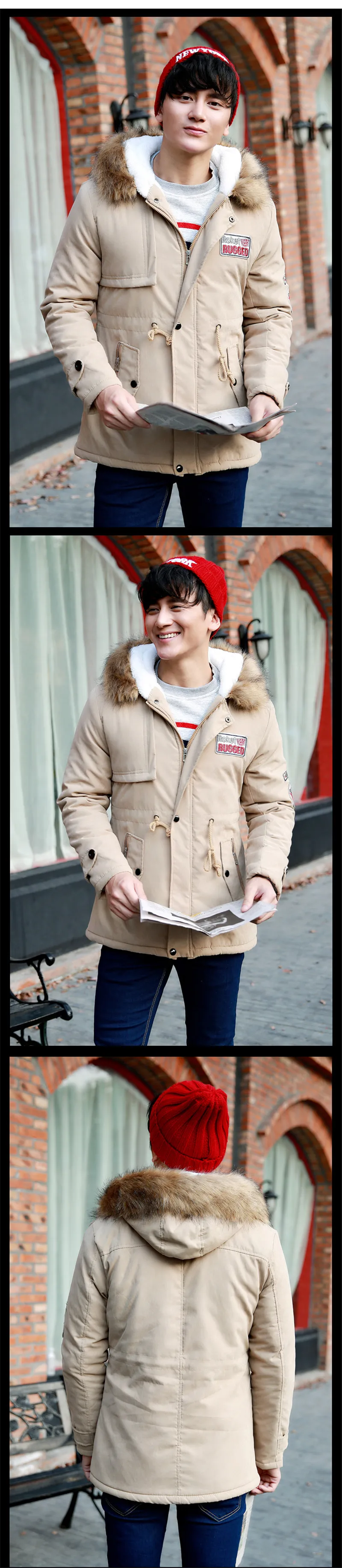 Мужская Зимняя парка 2020, модное корейское длинное пальто, теплая парка в стиле милитари с бархатным меховым воротником и капюшоном, Мужская толстая пуховая куртка