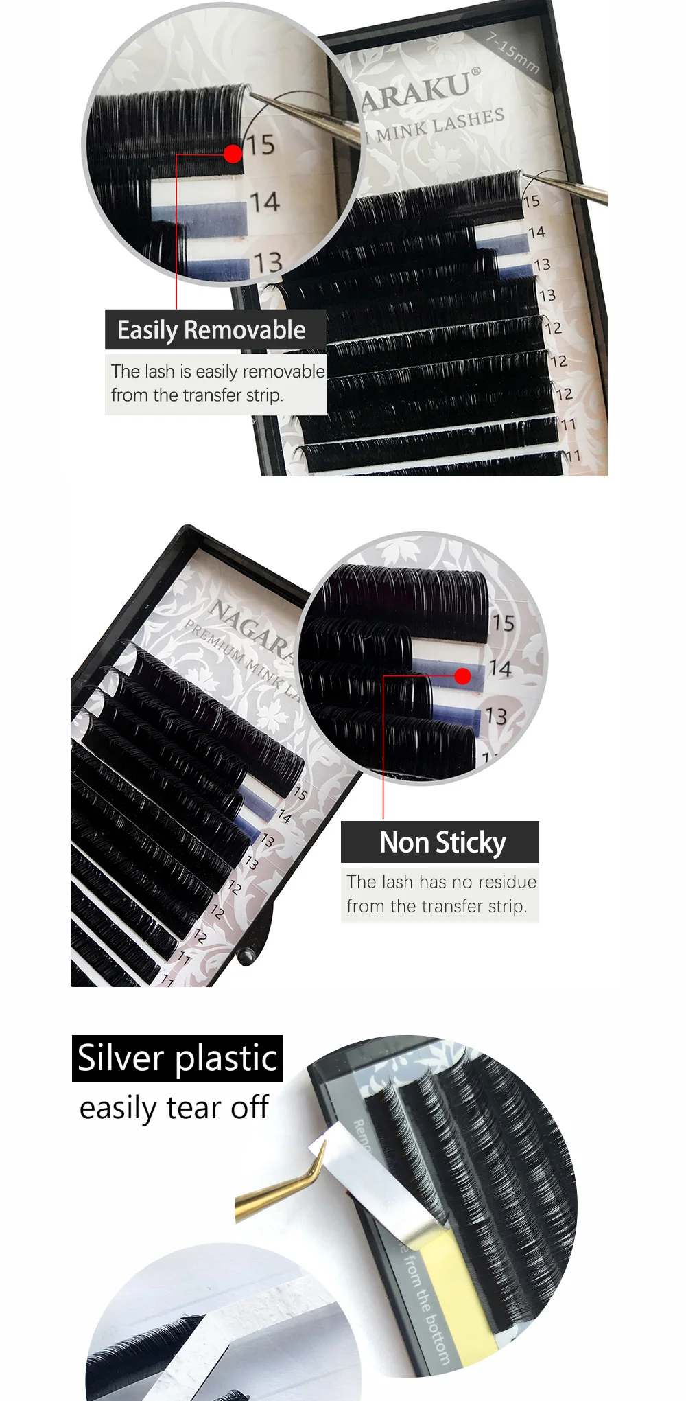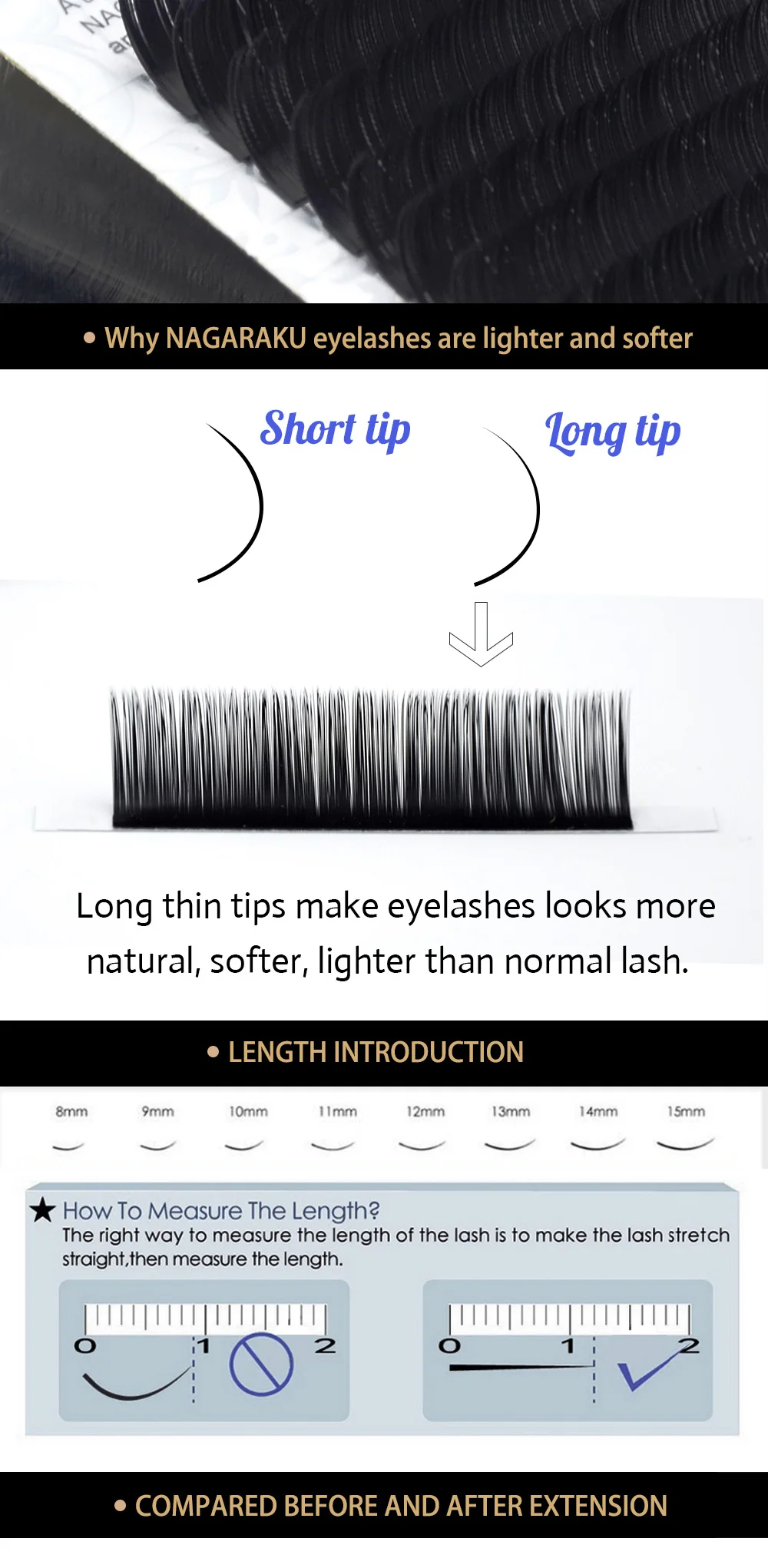 NAGARAKU Быстрая Доставка Микс Чёрные Ресницы для Наращивания 16 Линий 7-15 мм Микс Премиум Натуральная Синтетическая Норка Индивидуальное Наращивание Ресниц Макияж