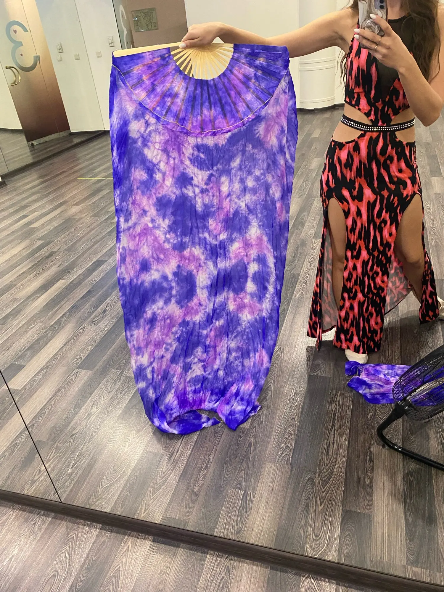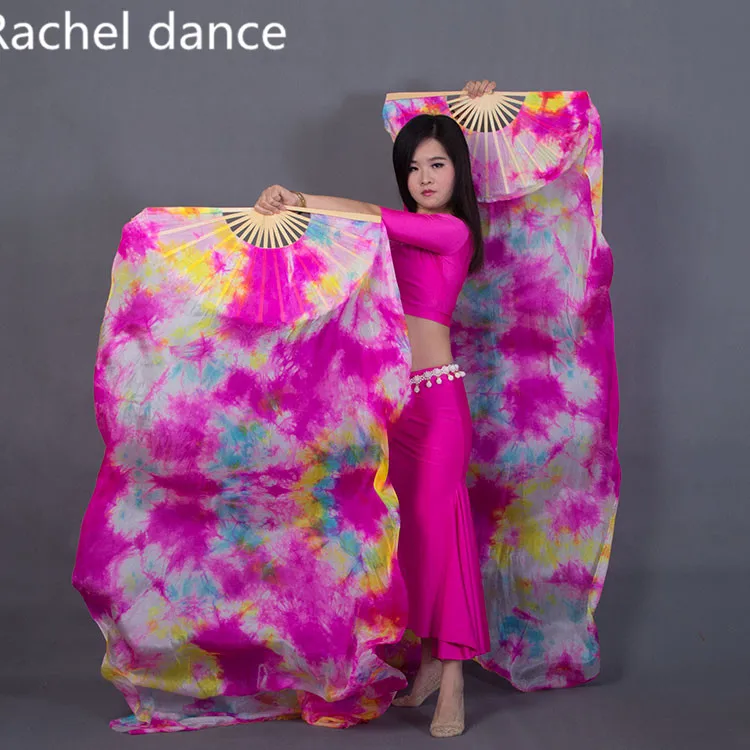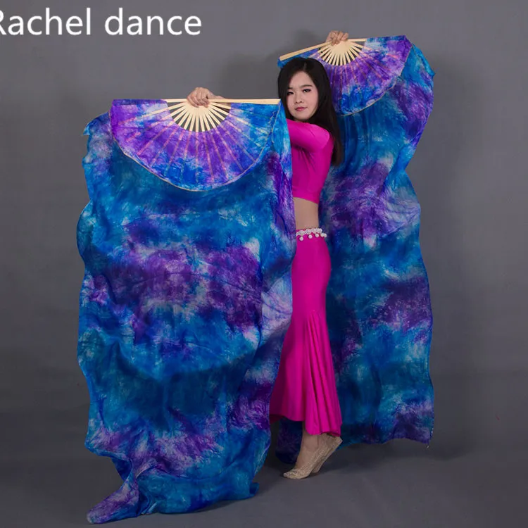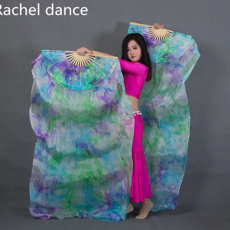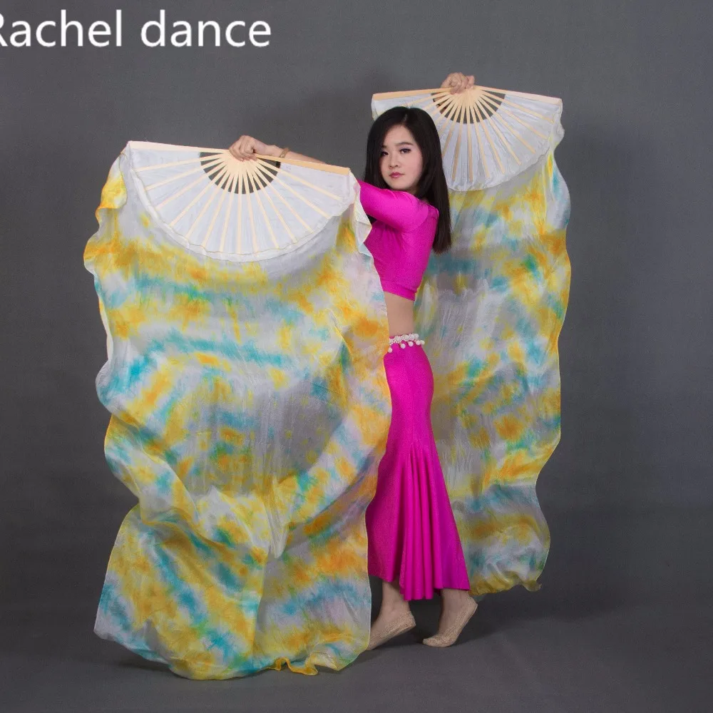 Китай, настоящий 100% шелк, веер для восточных танцев с градиентом огня, для танца живота, для выступлений на сцене, веер для танцев, разные цвета, 1 пара