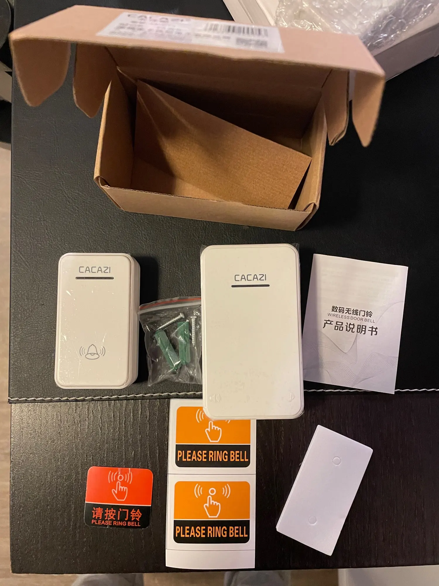 Умный беспроводной дверной звонок CACAZI, водонепроницаемый Светодиодный светильник с батарейным питанием постоянного тока, беспроводной звонок для звонков, 48 звонков, 6 звонков