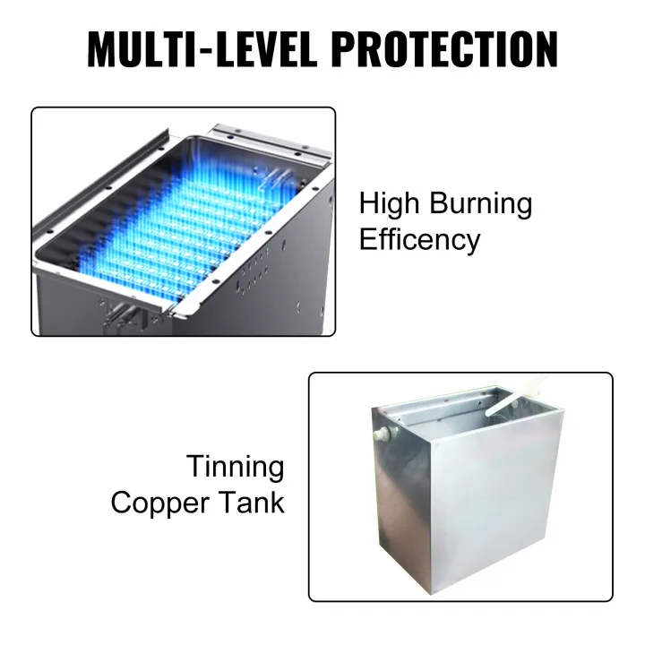 Изготовлен из высококачественной стали,Этот газовый водонагреватель прочен и устойчив к коррозии. Нанесите луженую медьРезервуар для воды, устойчив к коррозии и быстро нагревается.