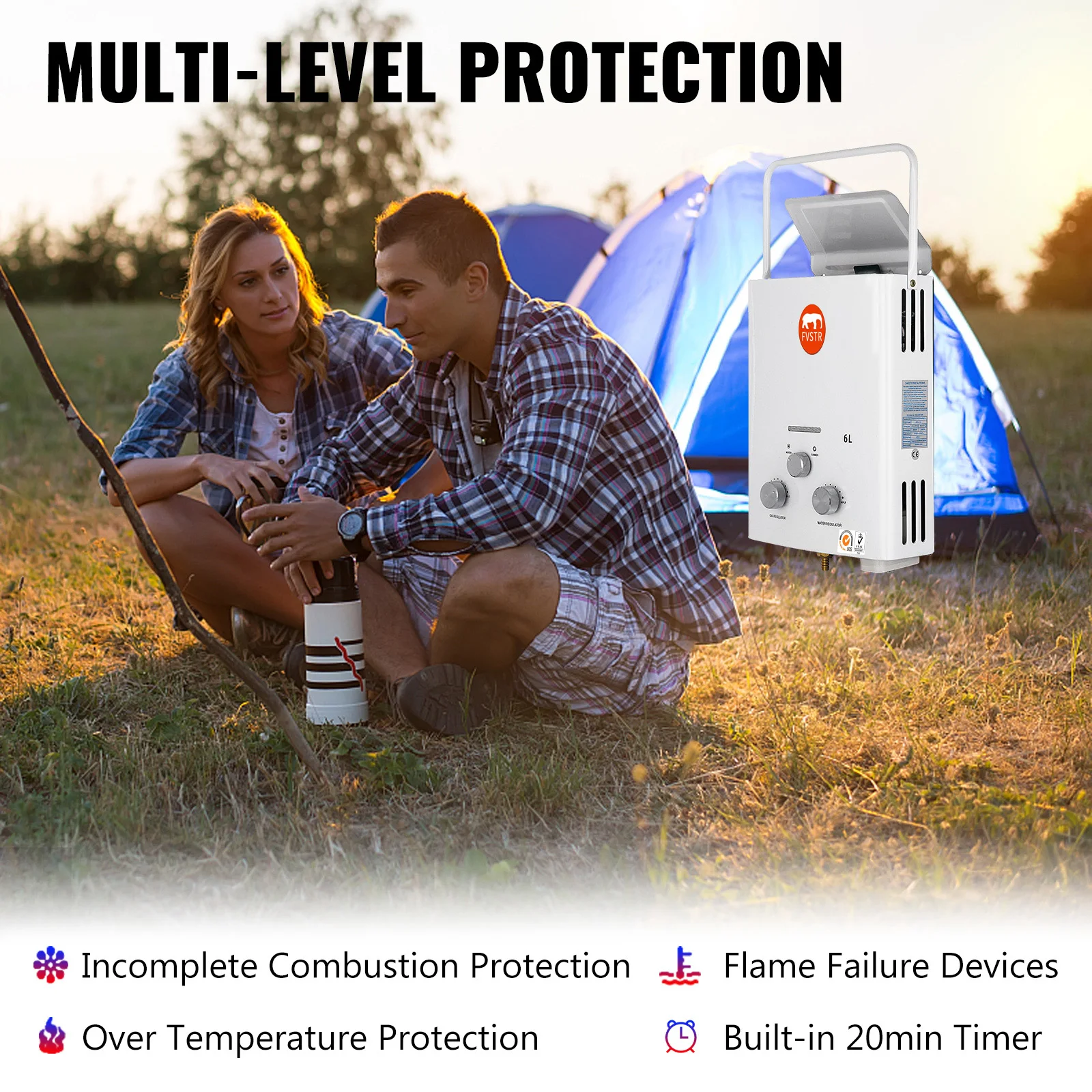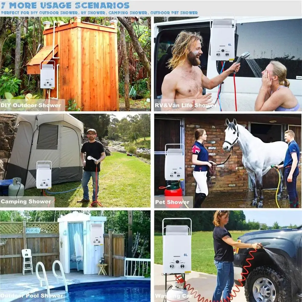 ·[Многоцелевое применение]- FVSTR быстро нагревается, идеально подходит для душа, мытья домашних животных, уборки на открытом воздухе, кемпинга, поездки по дороге и т. д. Обеспечивает постоянную горячую воду, особенно зимой или в холодных местах. Мгновенная бесконечная горячая вода, идеально подходит для кемпера, без электрического подключения, прицепа, фургона, яхты. Наслаждайтесь уютным душем в любое время.