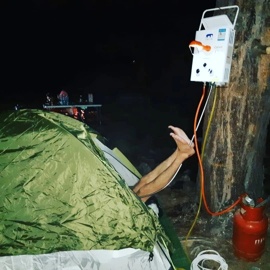 Нет необходимости устанавливать как другиеТовары на рынке. Идеально подходит для кемпера, без электрического подключения, прицепа, фургона,Яхта. Наслаждайтесь уютным душем в любое время.