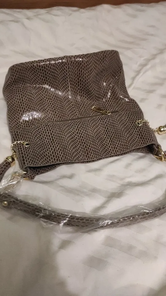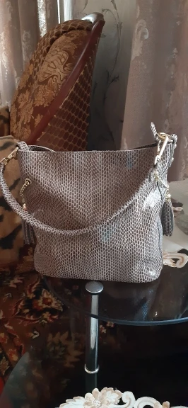 Спасибо огромное продавцу за сумку.Это моя вторая сумка этой фартуры.Похожа на натур.кожу или очень хорошая подделка.Первой моей сумке уже год и она какая была,такая и есть.Сумка не большая,но вместительная. Даже интересней смотрится,чем моя первая сумка.Кто еще думает ,берите не бойтесь,понравится.Цвет интересный,серо-коричневый.Не ткань и не клеенка.Фурнитура добротная.Фабричная,не кустарщина.