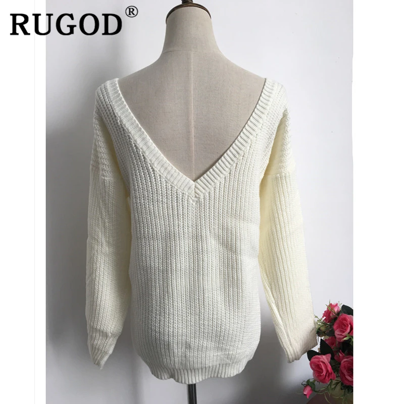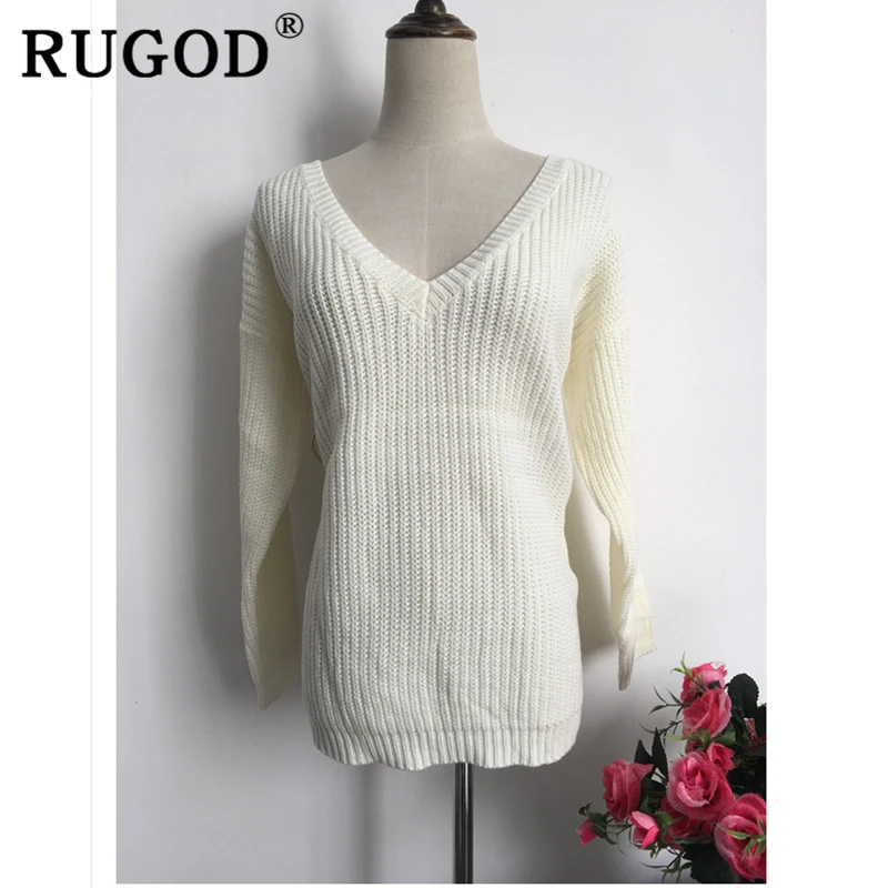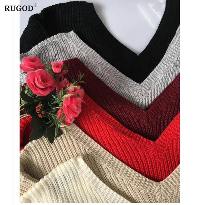 Модная женская футболка RUGOD 2020, сексуальные теплые свитера оверсайз с двойным V-образным вырезом и длинным рукавом, уличная одежда, женская зимняя трикотажная одежда YYQX01