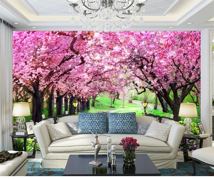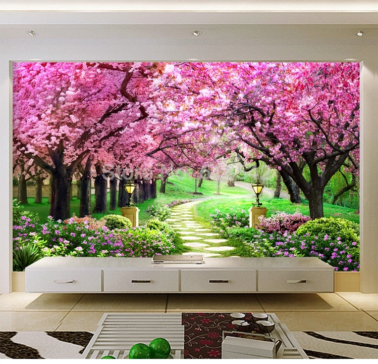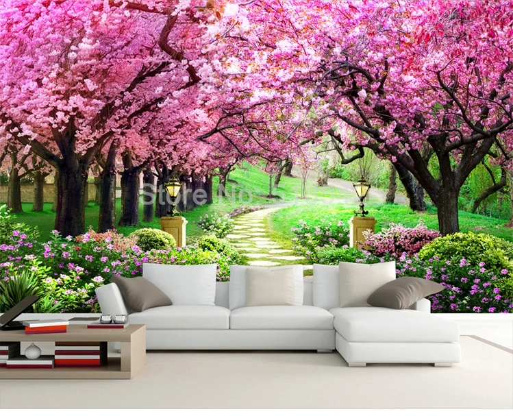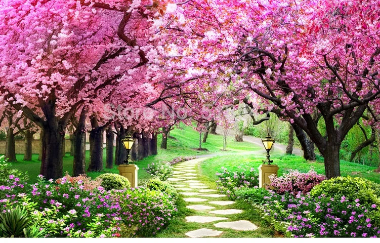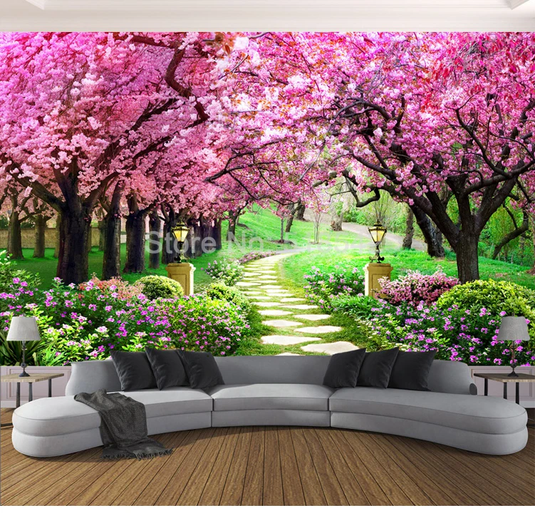 Пользовательские 3D фотообои, цветы, романтические вишневые цветы, деревья, маленькая дорога, Настенные обои для гостиной, спальни