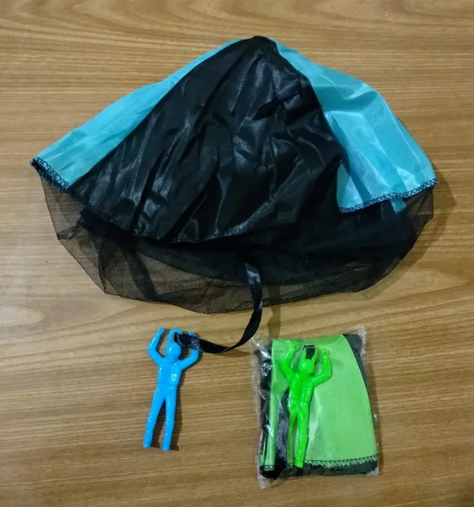 Парашют большой и он летает. Надо только высоко подкинуть. Посылка пришла быстро. Удивлена )