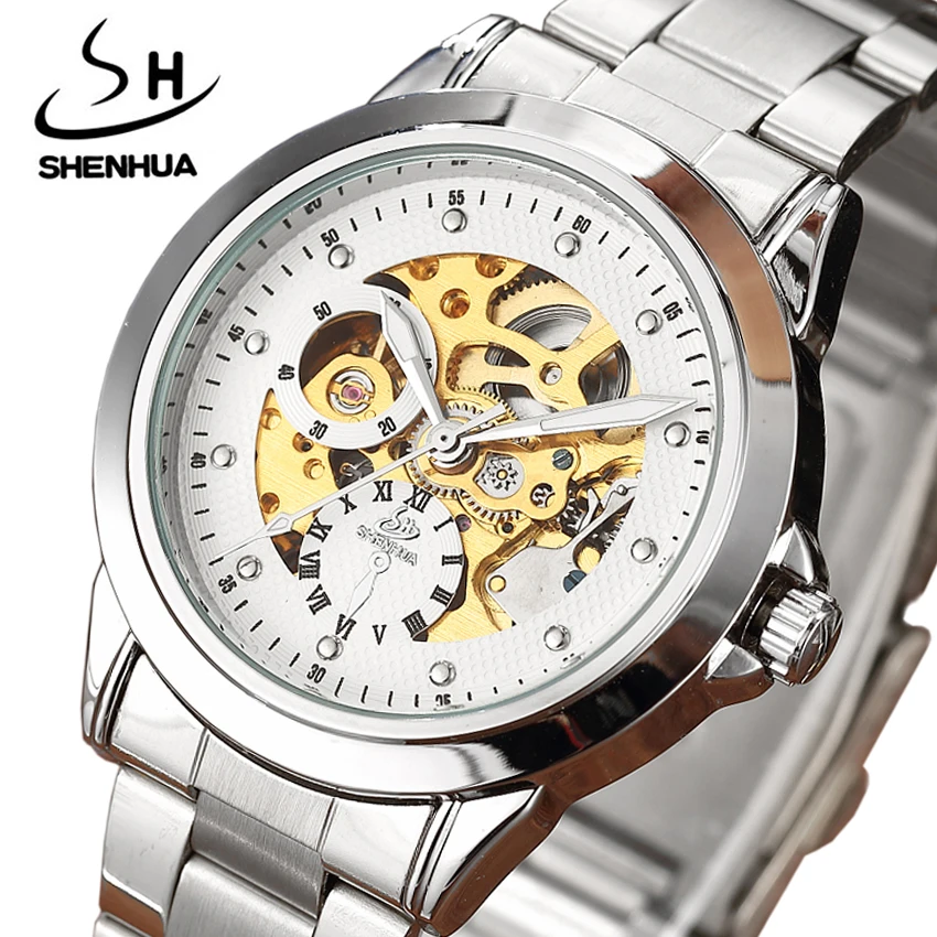 Мужские автоматические механические наручные часы-скелетоны из серебристой стали