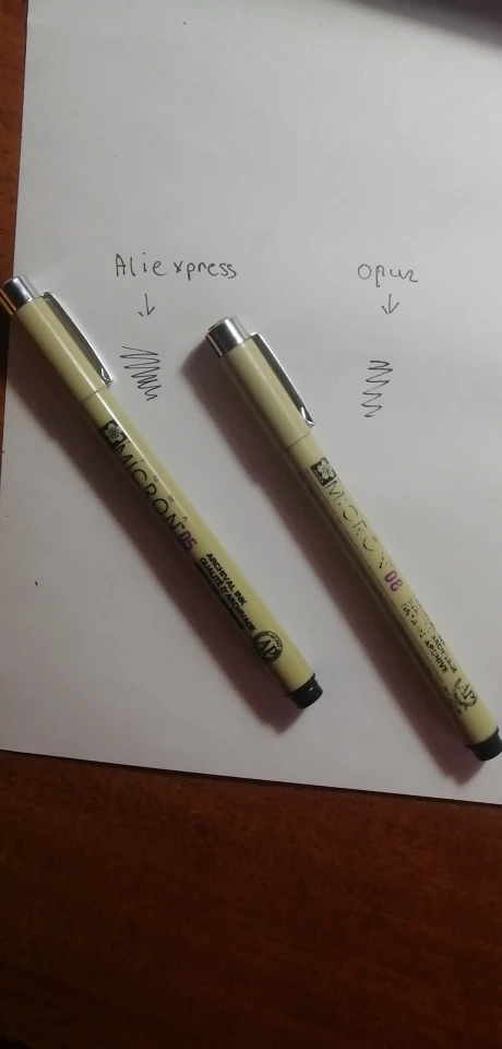чёт думала, что 0.2 будет круглым, а он в итоге плоский. особо не проблема, но я в душе не ебу, как им лайн рисовать. наверное, буду для скетчей использовать. цвета очень насыщенные, рисуется легко, пришло быстро, никакие не потекли(как было у меня когда-то давно с таким же товаром, но от другого продавца), буду отныне здесь заказывать. хотя, возможно, это воля случая